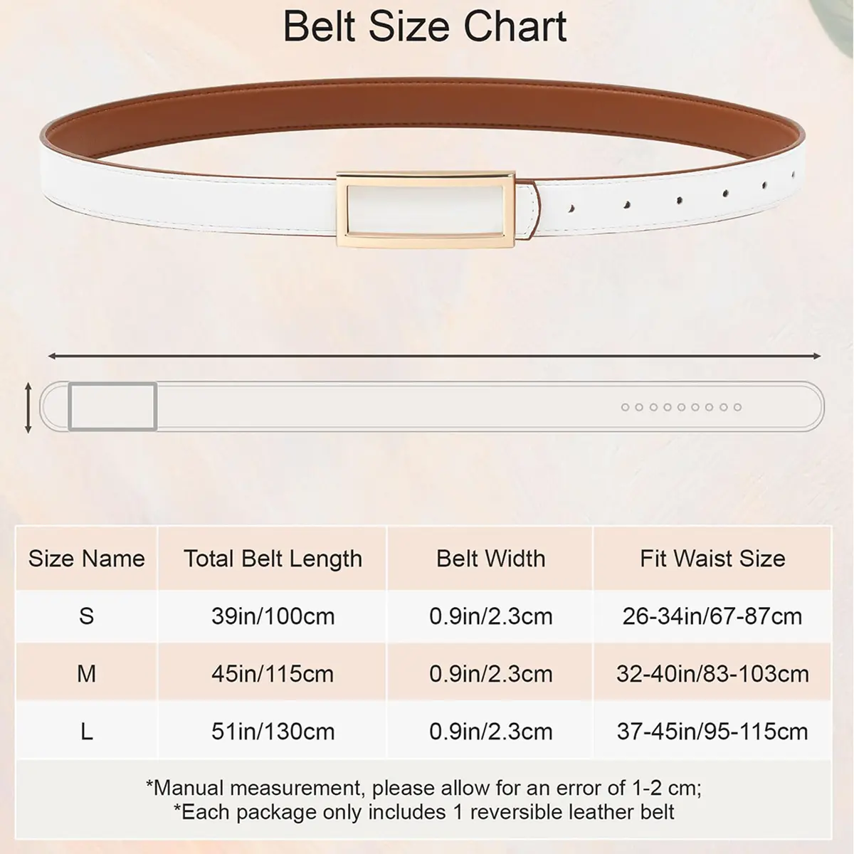 【Women Adjustable Belt 】- Women's leather belt is 0.9 inches wide; available in 3 sizes to fit waists 26-45 inches. The reversible belt has a total of 9 holes and comes with an extra hole punch, making it easy to adjust to the size you need