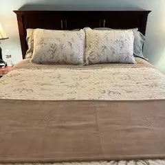 This quilt is so beautifully made! I love the watercolor look of the leaves, the fact that it’s reversible, and the quality is just *chefs kiss*. I’m in my 30s and have been looking for a quilt for our master bedroom for a long while. Something light and farmhousey, but still cute and young. I didn’t want people coming over thinking they were at grandma’s house, not until I’m a grandma anyway! This quilt just checks all the boxes and when I saw it I knew I had to have it! I went from all white ruffle bedding before to all new cozy warm colors to match this quilt and now I don’t ever get out of bed :)