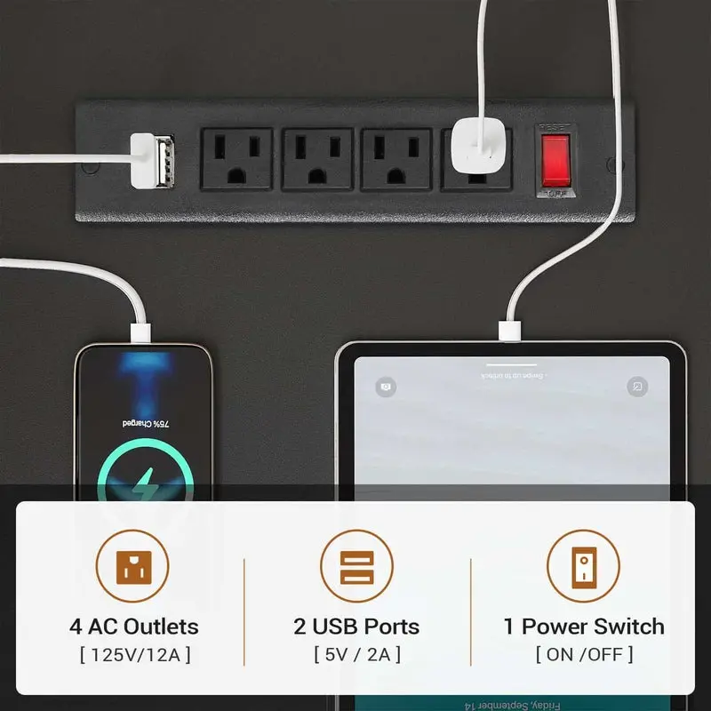 ·Built-in Charging Station: The integrated charging station includes 4 power outlets and 2 USB ports, allowing you to charge up to six devices at the same time. It also features a convenient on/off switch for one-touch power control, ensuring safer and more efficient charging for phones, tablets, laptops, and other devices.