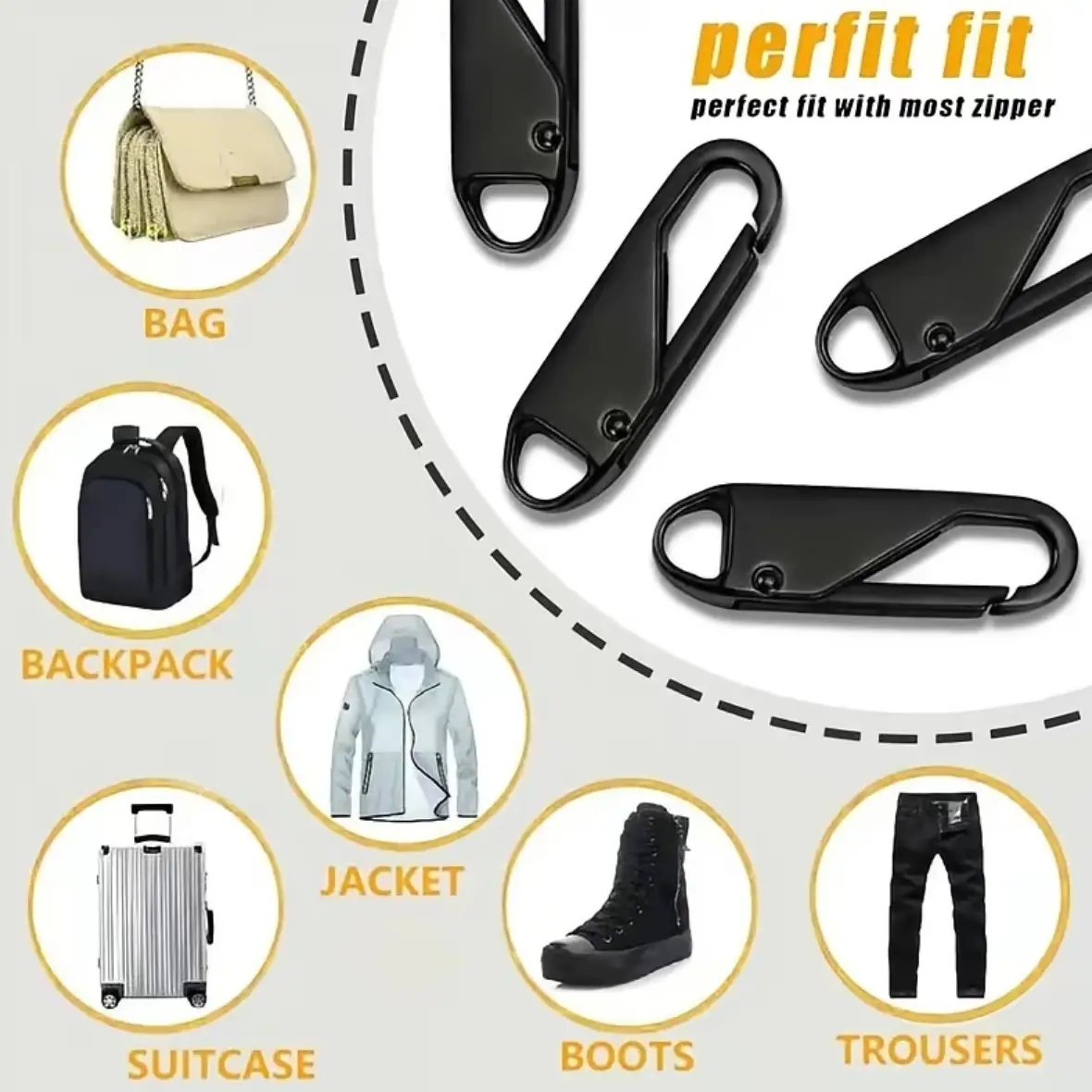 Zipper Pull Replacement,4 Counts Detachable Zipper Head, Reusable Versatile Zipper Pull for Travel Bags,Clothing,Backpacks,Boots,Wallets