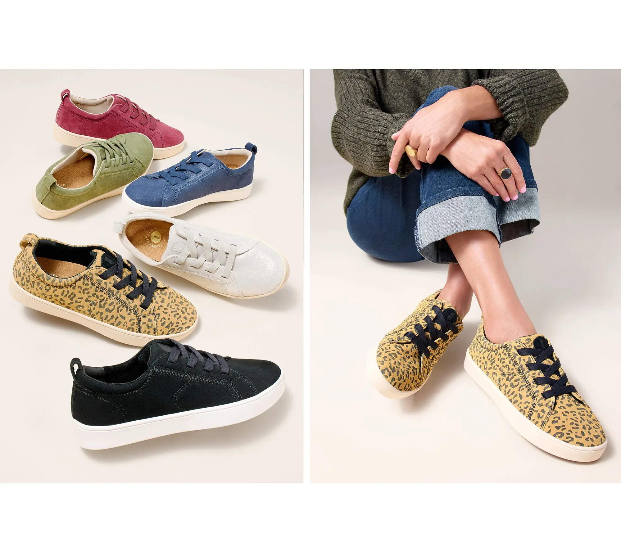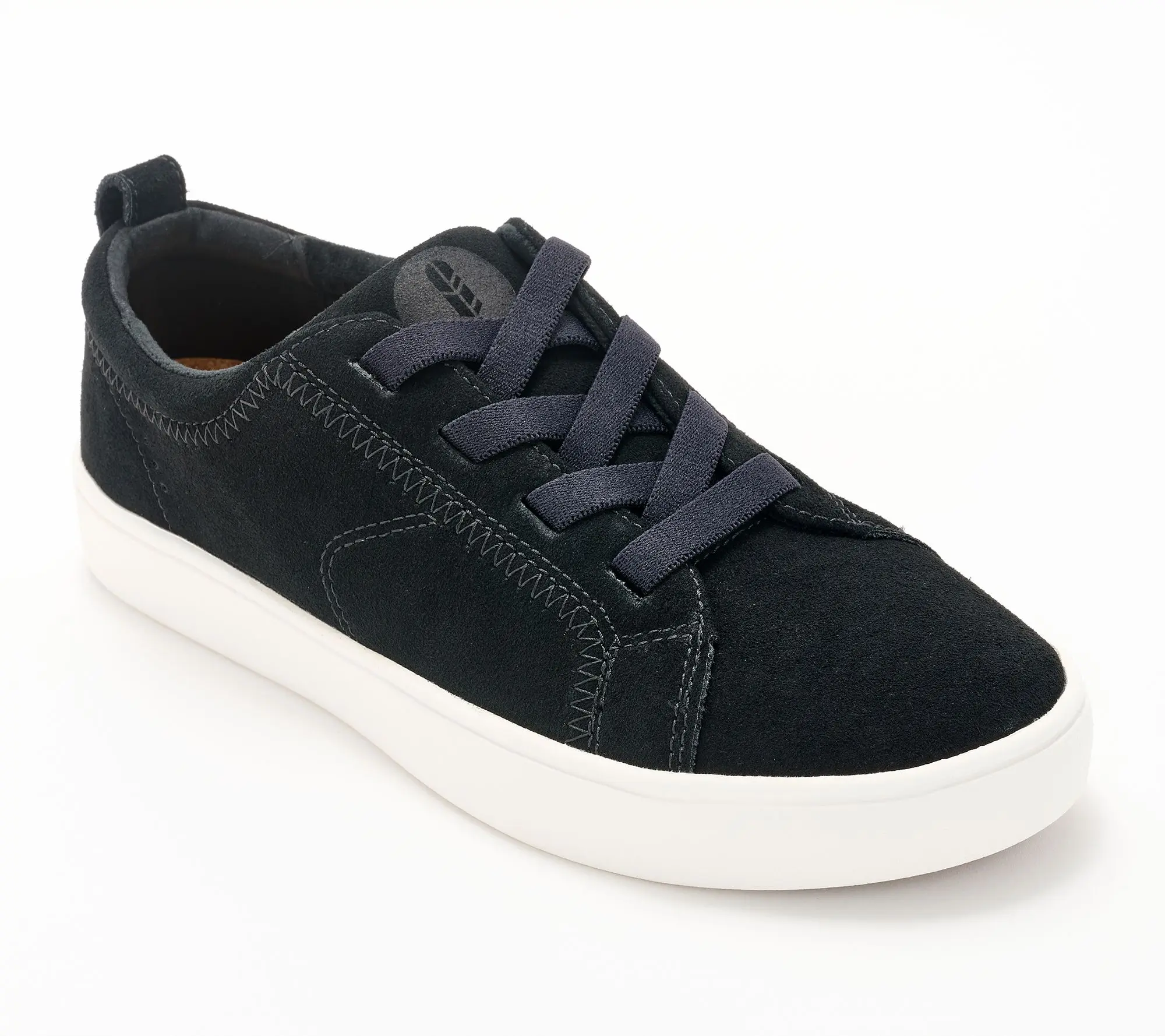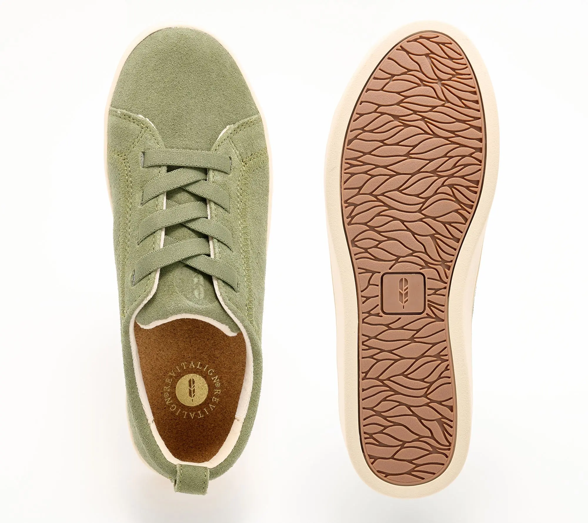 Revitalign Orthotic Suede Gore-Lace Casual Sneakers - Misty Features water resistant suede upper material and stretch gore lacing with pull tab for easy on/off. Rubber cupsole outsole with orthotic support and articulated flex zones. Heel Height: 1 1/4 in. Sole Thickness: 1/4 in. COO: Imported. Fits True to Size. Content: Leather Upper/Balance Man-Made Materials. Footbed is removable.
