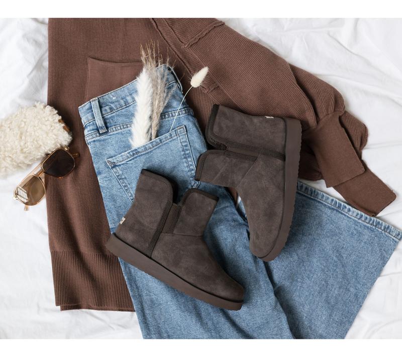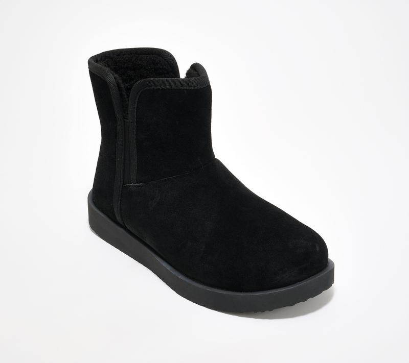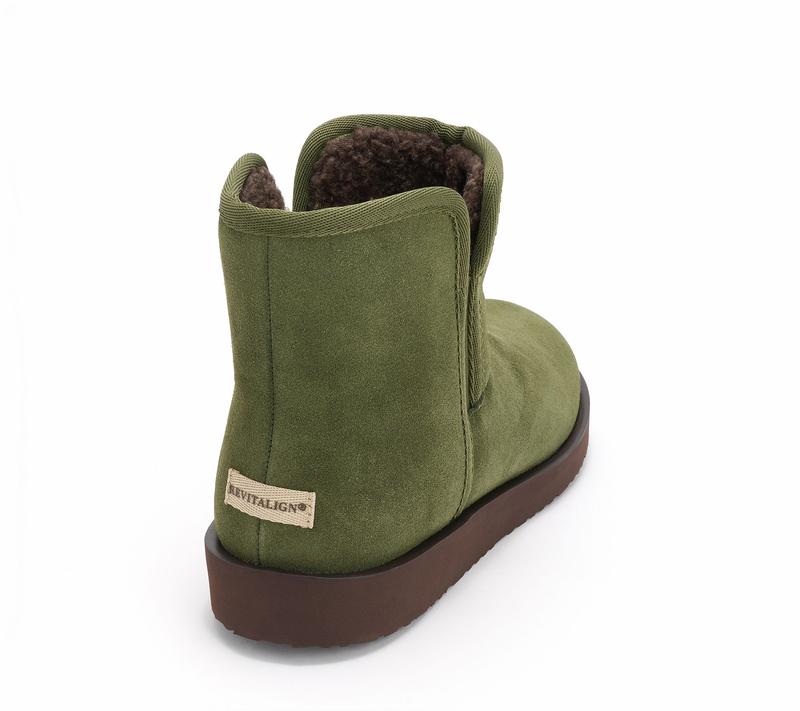 Revitalign Orthotic Water Repellent Suede Cozy Boots - Aspen Fireside Crafted from genuine water resistant suede and lined with faux fur. Stretch gore panels for easy slip on/off. COMFORTPRO- light weight outsole grade EVA technology provides orthotic and metatarsal support. Heel Height: 1 7/8 in. Sole Thickness: 1/4 in. Shaft: 5 1/4 in. Opening Circumference: 13 in. COO: Imported. Fits True to Size. Content: Leather Upper/Balance Man-Made Materials. Footbed is removable.