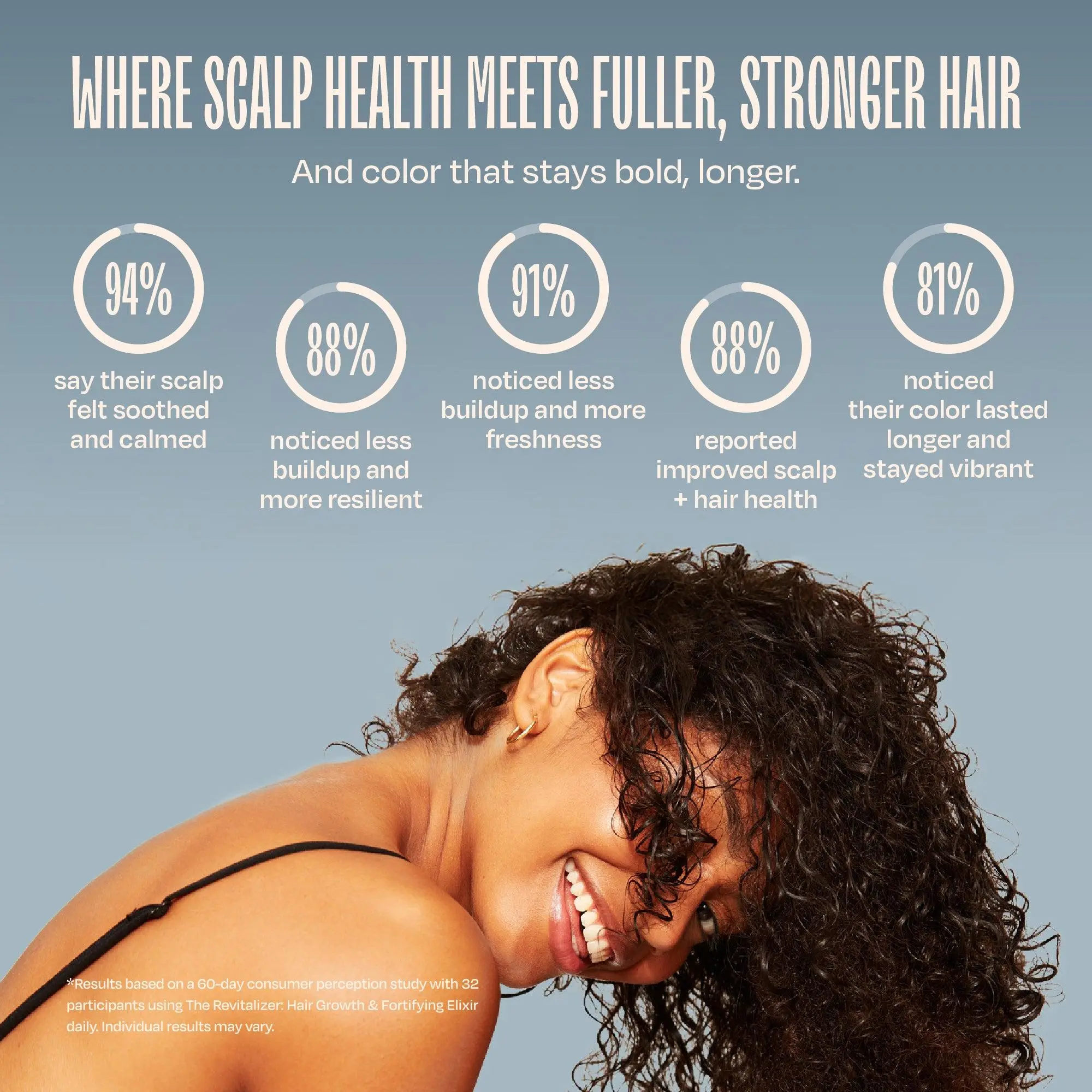 Experience a healthier scalp and stronger looking hair with our innovative scalp spray! Our 94% naturally derived formula helps nourish and soothe your scalp, supports healthier hair growth, and reduces visible signs of hair breakage, shedding, and fallout.