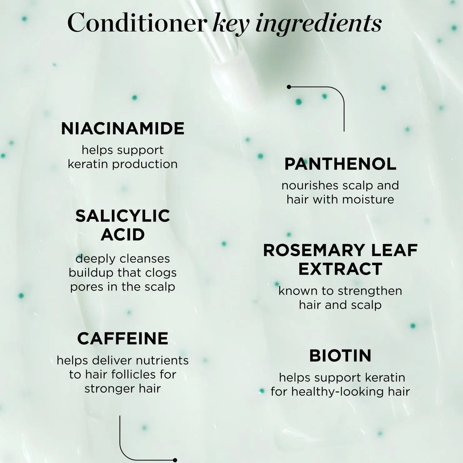 IngredientsWater/Eau, Disodium Laureth Sulfosuccinate, Disodium Lauryl Sulfosuccinate, Glycerin, Cocamidopropyl Betaine, Parfum/Fragrance, Acrylates/C10-30 Alkyl Acrylate Crosspolymer, Sodium Cocoyl Isethionate, Saccharomyces Cerevisiae Extract, Yeast Extract/Extrait De Levure, Beta-Glucan, Inulin, Maltodextrin, Bifida Ferment Lysate, Lactobacillus Ferment Lysate, Anthemis Nobilis Flower Water, Rosmarinus Officinalis (Rosemary) Extract, Biotin, Caffeine, Melissa Officinalis Flower/Leaf/Stem Water, Houttuynia Cordata Extract, Panax Ginseng Root Extract, Paeonia Suffruticosa Branch/Flower/Leaf Extract, Paeonia Suffruticosa Root Extract, Artemisia Annua Extract, Azadirachta Indica Leaf Extract, Camellia Sinensis Leaf Extract, Mentha Arvensis Leaf Extract, Centella Asiatica Leaf Extract, Hyaluronic Acid, Polygonum Multiflorum Root Extract, Panax Ginseng Leaf/Stem Extract, Arginine, Benzyl Alcohol, Aspartic Acid, Polylysine, Zingiber Officinale (Ginger) Root Extract, Ganoderma Lucidum (Mushroom) Extract, Pca, Serine, Glycine, Alanine, Althaea Officinalis Root Extract, Calendula Officinalis Flower Extract, Chamaecyparis Obtusa Leaf Extract, Phellinus Linteus Extract, Valine, Dehydroacetic Acid, Isoleucine, Proline, Threonine, Histidine, Phenylalanine, Sodium Pca, Alchemilla Vulgaris Extract, Vinegar/Vinaigre, Zea Mays (Corn) Starch, Dextrin, Peg-Crosspolymer, Caprylyl Glycol, Di-C12-13 Alkyl Malate, Polyquaternium-7, Microcrystalline Cellulose, Cocamide Mea, Coco-Glucoside, Glyceryl Oleate, Menthol, Panthenol, Salicylic Acid, Coconut Acid, Niacinamide, Ppg-3 Caprylyl Ether, Mannitol, Chromium Hydroxide Green(Ci 77289), Sodium Isethionate, Tetrasodium Edta, Methylpropanediol, Ethylhexylglycerin, Chlorophyllin-Copper Complex, Citric Acid, Potassium Hydroxide, Pentylene Glycol, Alcohol, Butylene Glycol, 1,2-Hexanediol, Sodium Lactate, Potassium Sorbate, Hexylene Glycol, Sodium Chloride, Sodium Benzoate.