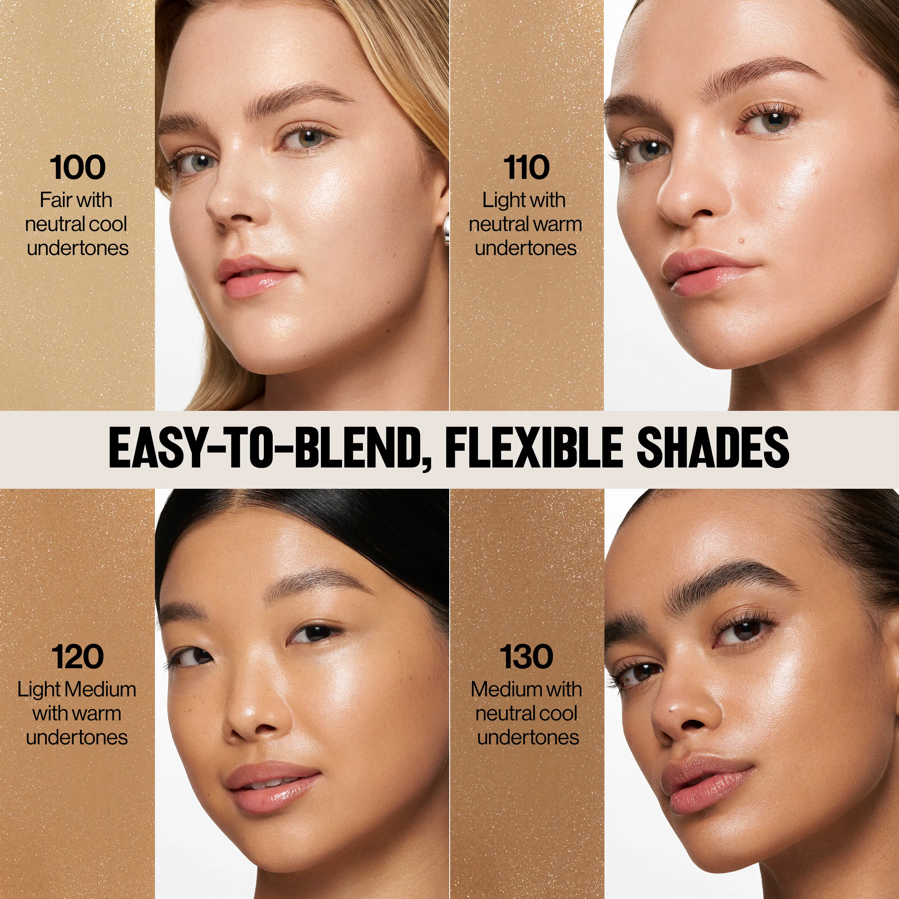 ·SHEER, GLOWY TINT: 8 buildable shades flex to a wide range of skin tones; won’t settle into fine lines, wrinkles or pores; all-day wear