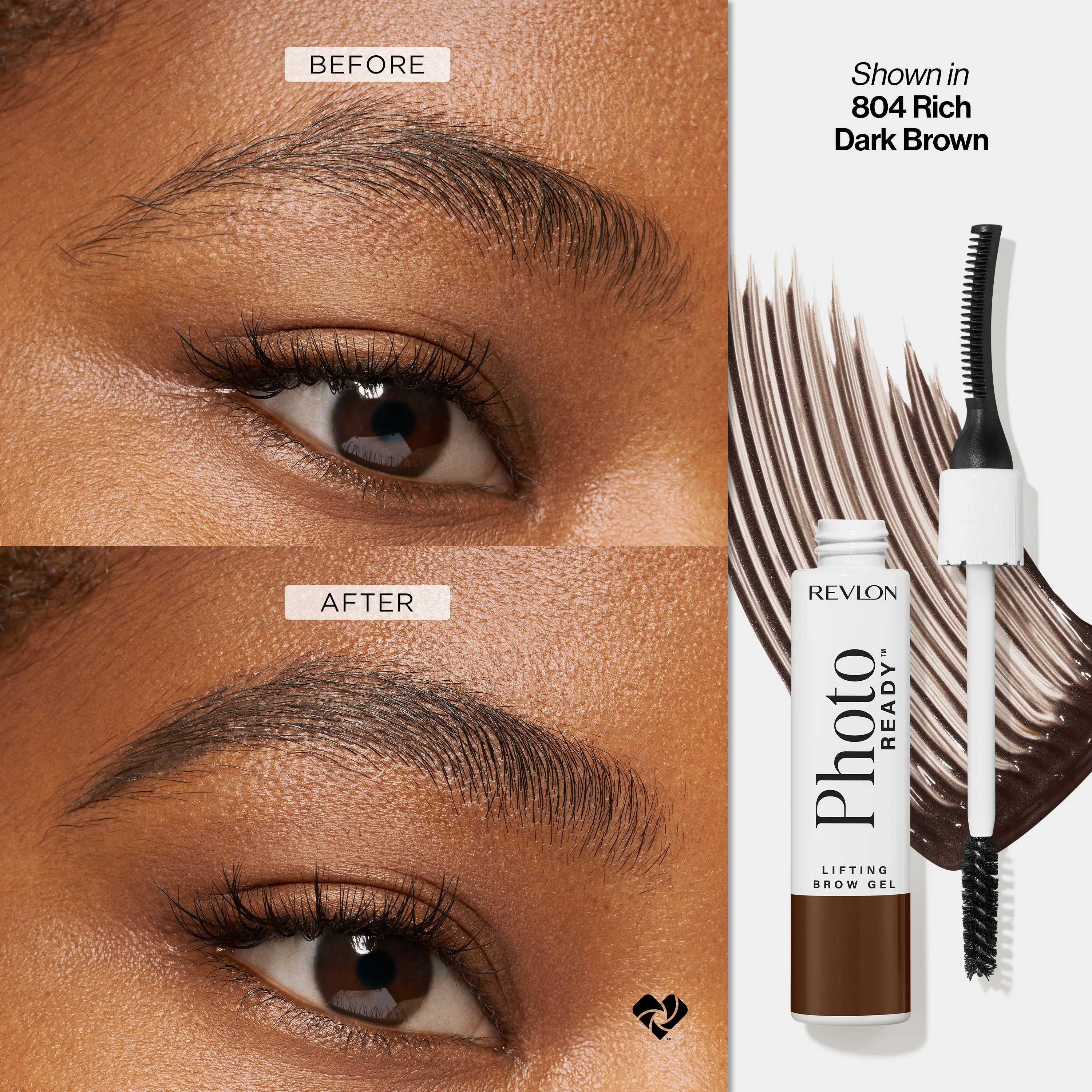 Directions: Revlon PhotoReady Lifting Brow Gel makes it easy to create a salon-worthy look. Here’s how: Use the spoolie to apply the brow gel, coating every hair evenly and building to your desired volume. Then, flip the applicator to the comb end to remove excess product and shape brows. Use the curved side of the comb to flatten and set brows into place. And that’s it. You’ll have perfectly lifted, sculpted, fuller-looking brows that last all day (and night). PRO TIP: For the ultimate selfie-worthy look, check out our PhotoReady Collection—makeup inspired by derm-tweakments to instantly transform your look.