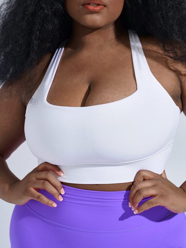 This bra was WAY more supportive than I expected. Definitely doesn't have the slack stretch that lets your chest go crazy during a workout, but in that regard it doesn't stretch as much as you think so if you're right between sizes then choose the bigger one.