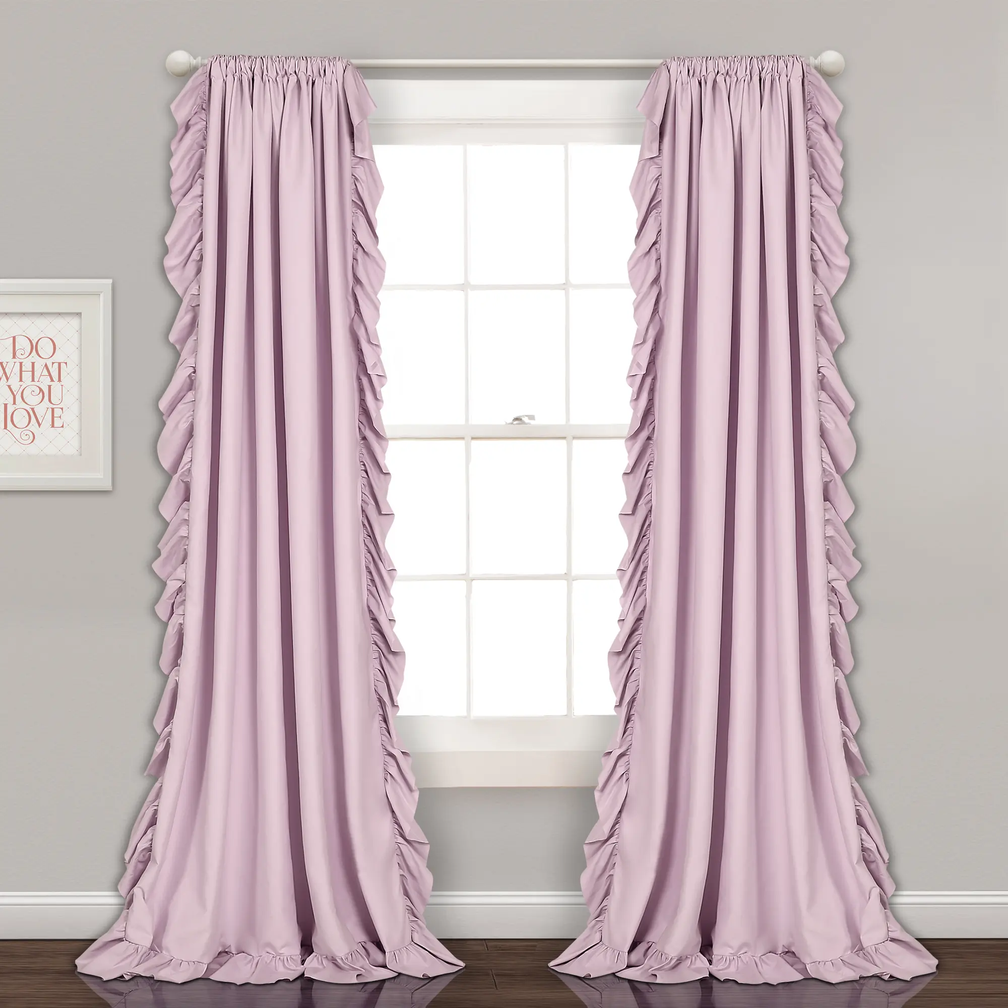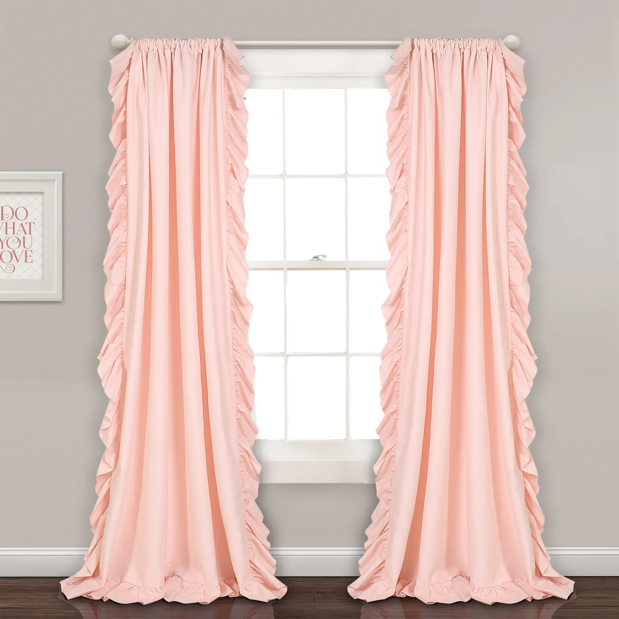 The Reyna set features a 3-inch rod pocket for easy installation. Simply slide it onto your curtain rod or hang with clip rings. Due to the delicate ruffled edges, dry cleaning or steam cleaning is recommended. Made in China, this 100% polyester fabric set is sold by the pair. 🛠️