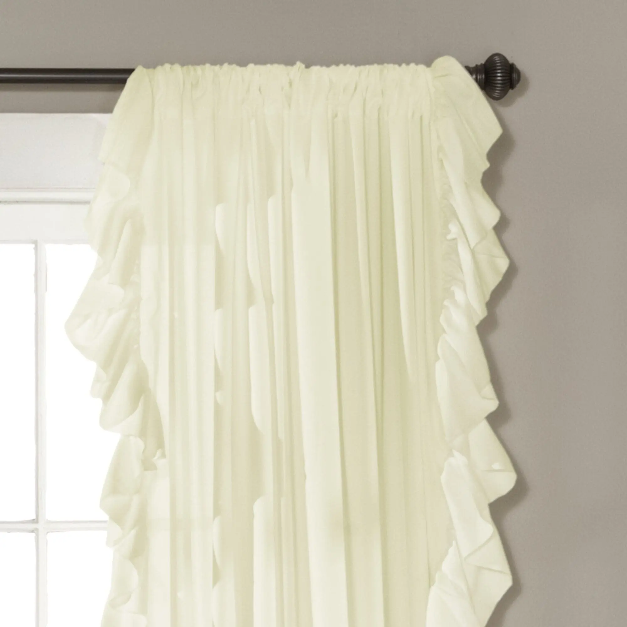 ✨ Lush Decor Reyna Window Curtain Panel Set brings elegance with its cascading ruffle border. This solid panel is perfect for shabby chic lovers and those who adore frilly decor. Ideal for bedrooms, living rooms, dining rooms, or nurseries. The set includes 2 panels, each 54 inches wide, with lengths ranging from 45 to 120 inches. No lining allows natural light while providing privacy. 🌟