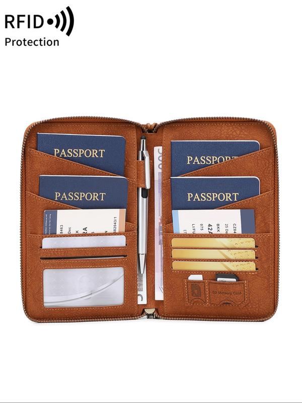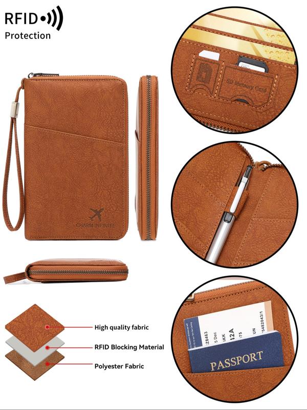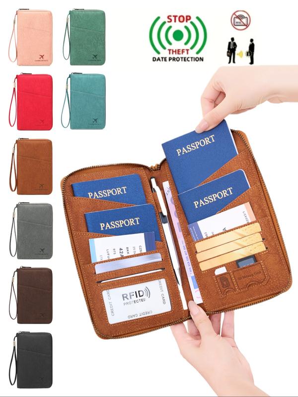 New RFID Blocking Passport Holder, Holds Multiple Passports, Travel Document Organizer, Skin-Friendly Zipper Wallet, Detachable Wrist Strap, Passport Cover