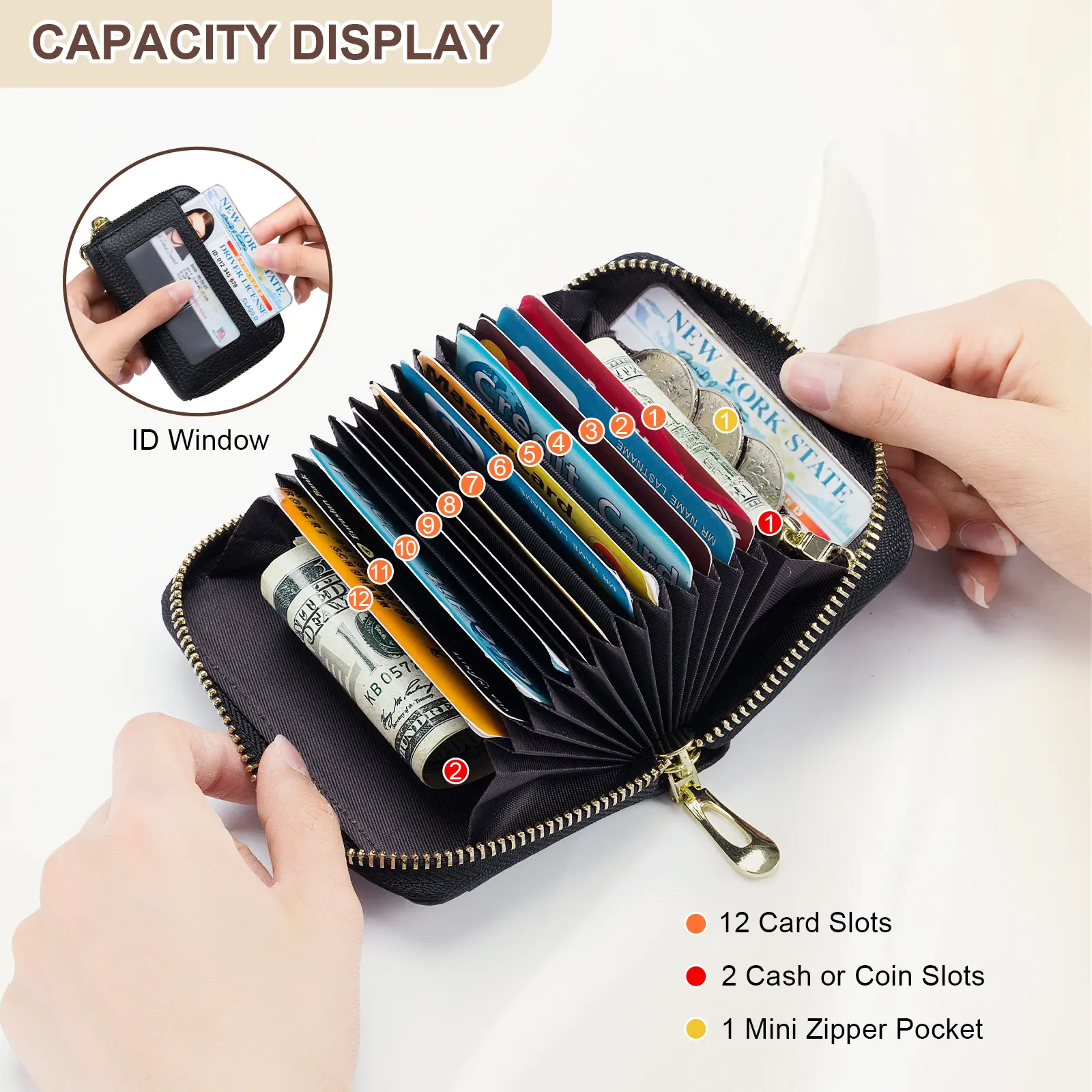 This is absolutely horrible. I only have 12 credit cards and that’s how many you can put and right when you close it towards halfway in the middle of zipping it it gets stuck, and you have to literally force it and use two hands to close it. not to mention the zipper inside is ripped