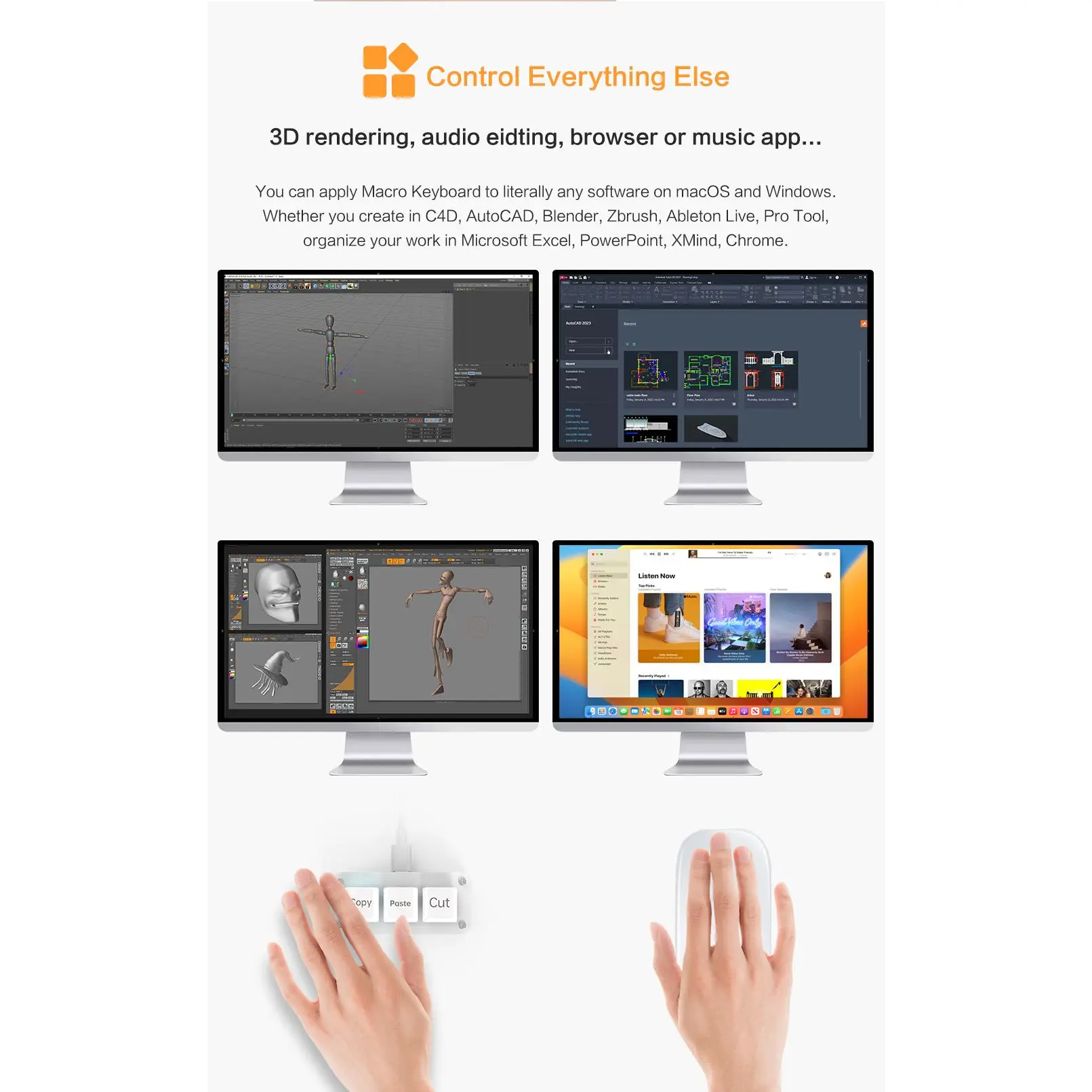 RGB 3 Keys Macro Programming Mini Keyboard for Photoshop Gaming Hotswap Programming Keypad Copy Paste Mini Button Macropad