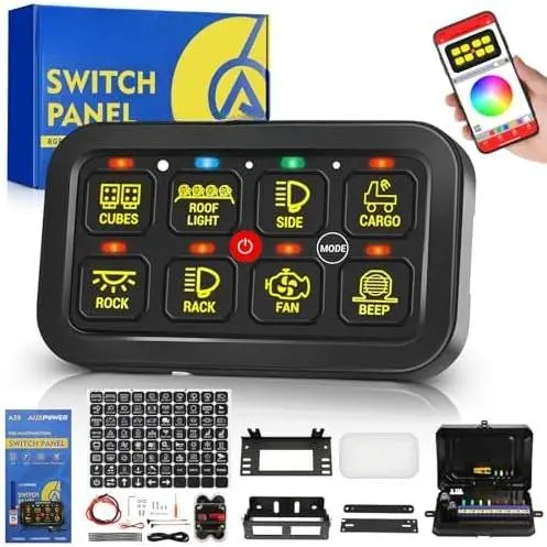 MULTIFUNCTION: The 8 gang panel has 3 utility functions: Turn /Off (push button control ), Momentary (press and hold to turn , release to turn off), and Pulsed (strobe mode). The memory function can keep your settings and help you open the devices. The RGB function is a good decoration for color matching and creating atmosphere.