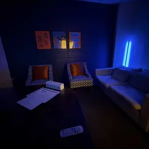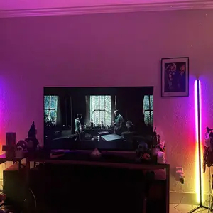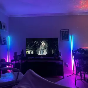 This RGB floor lamp can be controlled via remote, Bluetooth app, or touch controls on the top, allowing for precise adjustment of color and brightness.