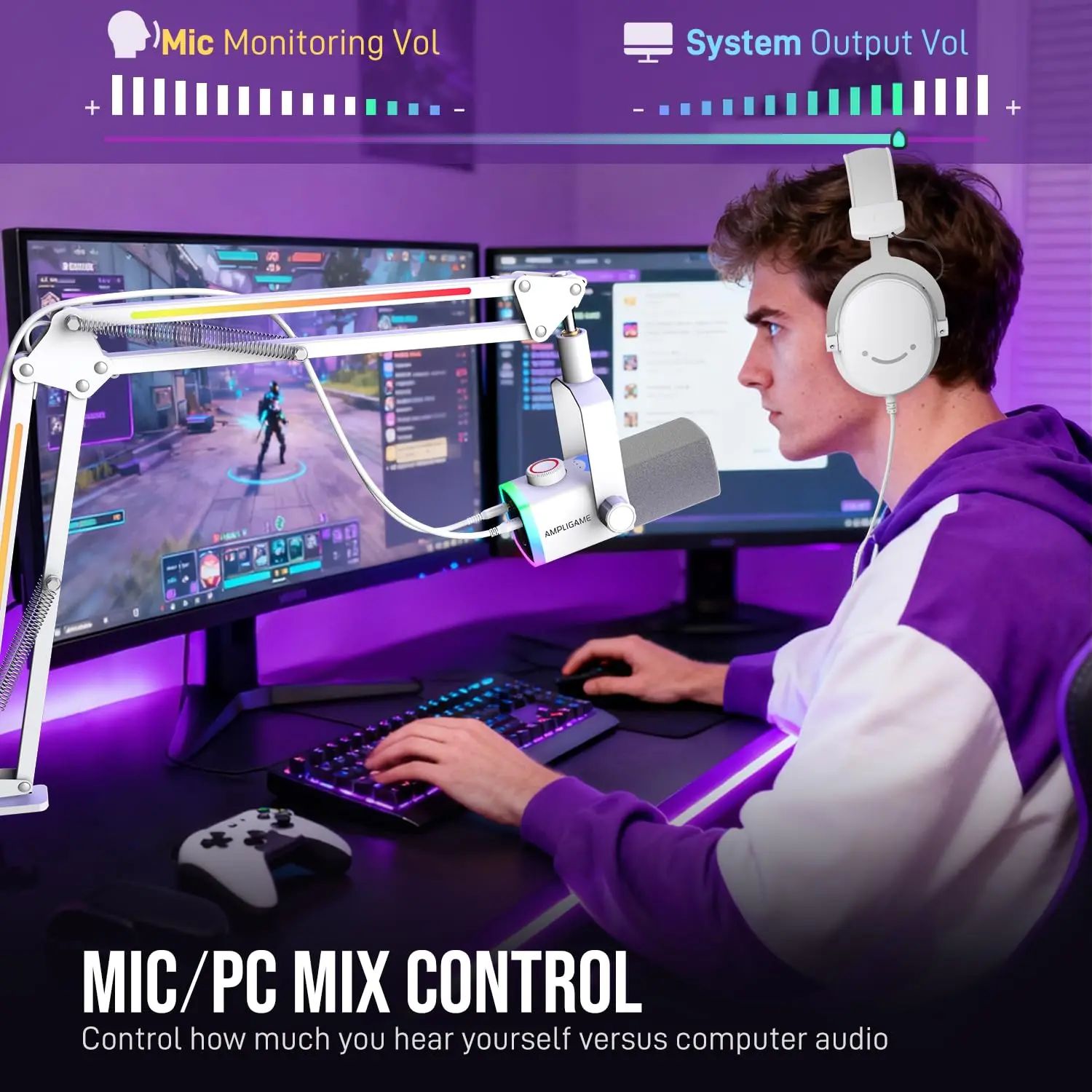 ·[Monitoring and Multifunctional Dial] Monitor your vocal mic and PC audio together in real-time no guessing. Adjust the Mix Control to balance the rhythm of background music and commentary when Let's Play, or lower mic level to focus on muffled podcast co-hosts. The silent 3-in-1 knob can be fine-tuned gain and headphone volume on the USB microphone with boom arm.