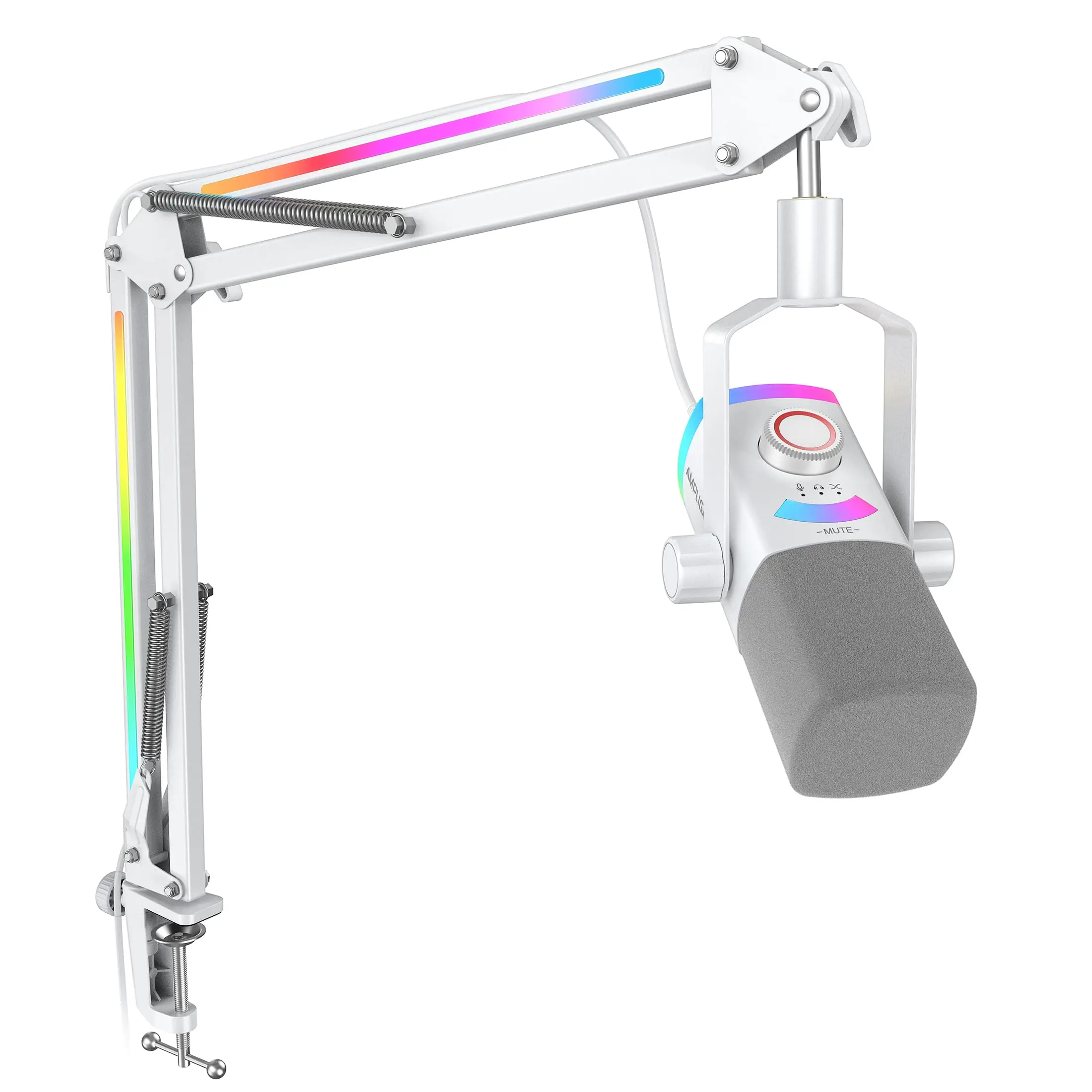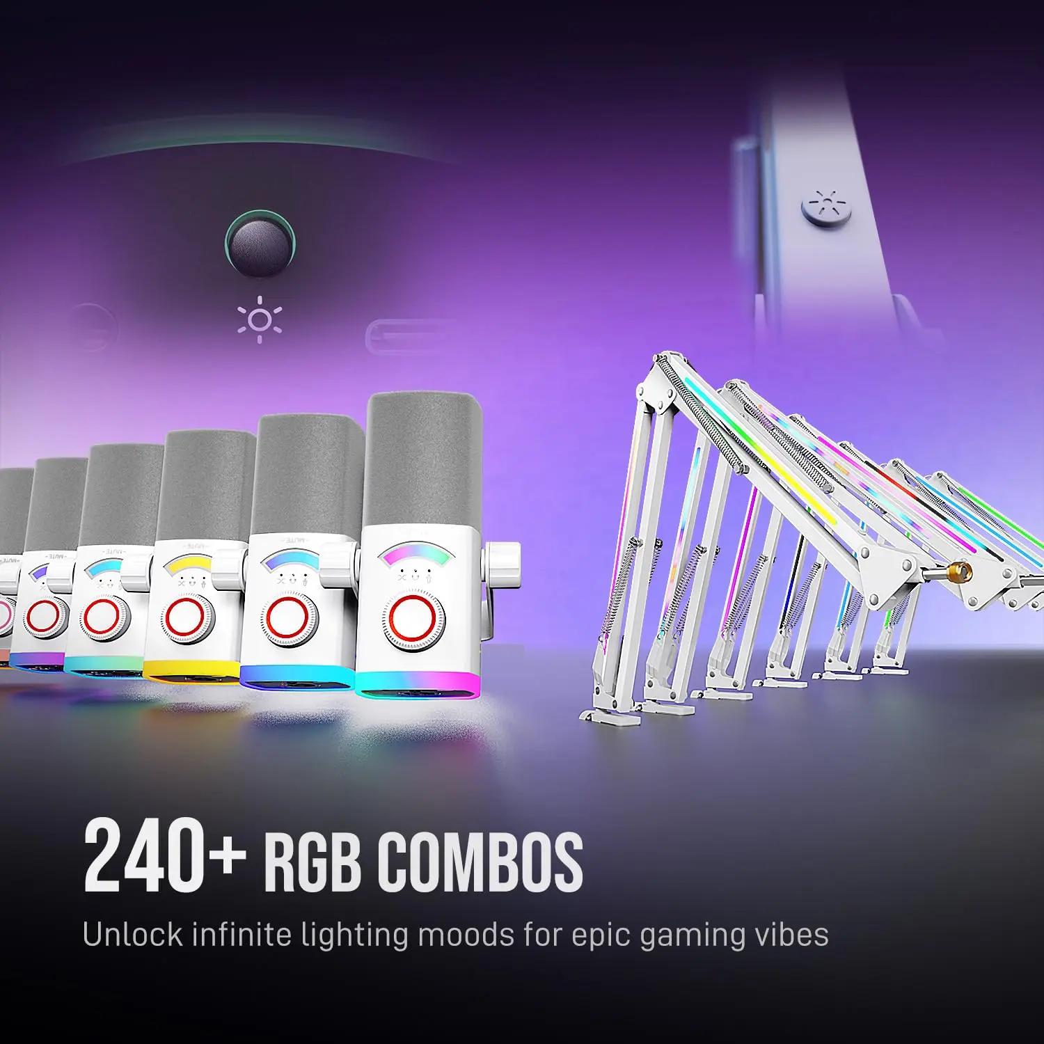 ·[Vibrant RGB System] Experience immersive 240+ RGB combos of mic and boom arm . Select beat modes that the computer microphone pulses to horror game soundtracks, dialing up chilling tension. The arm stand glowing pair with the boom mic lighting enhances explosions via flowing modes or maintains strategic focus via cool tones by controlling RGB button.