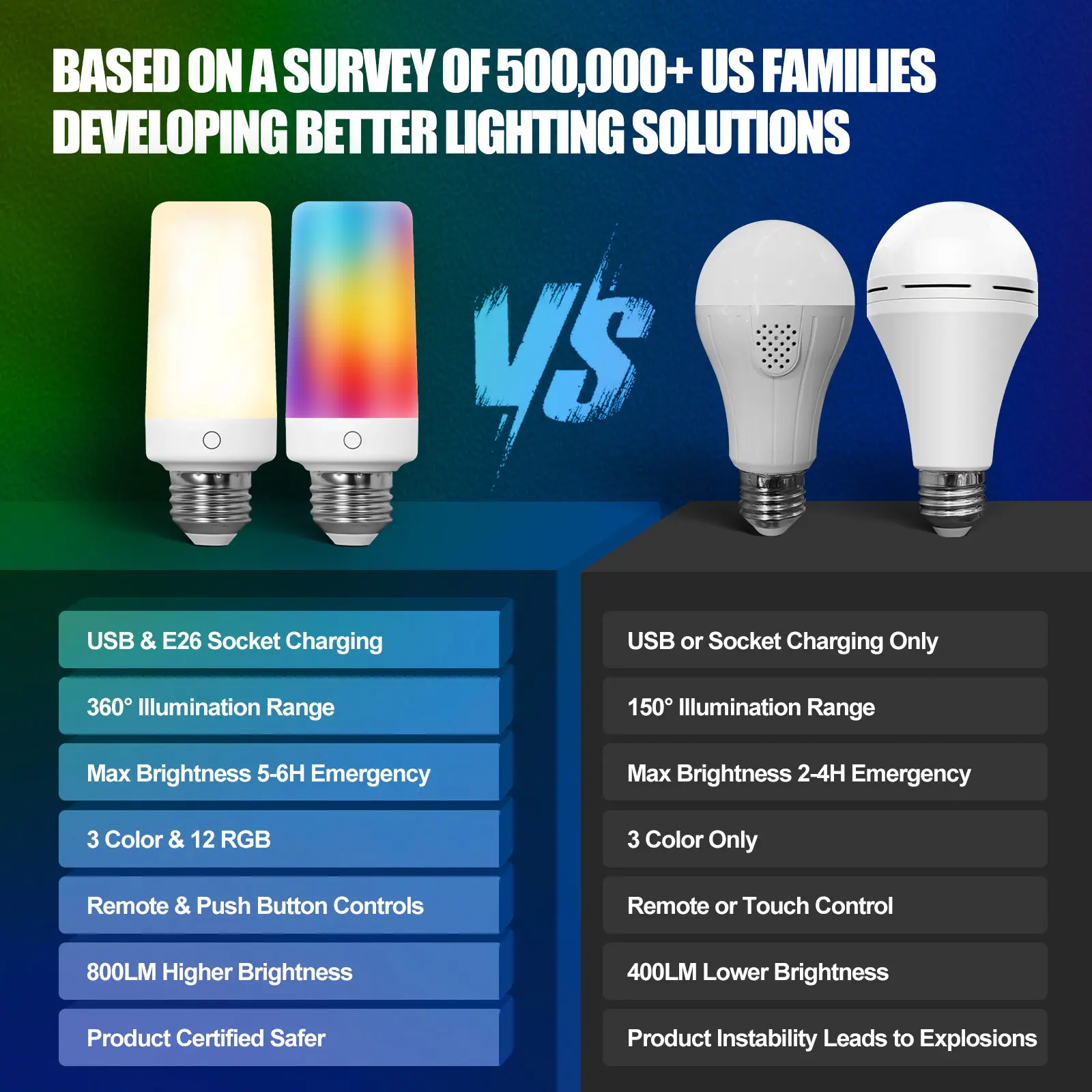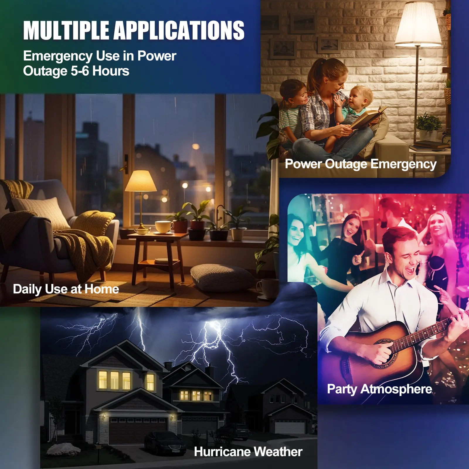 ·Auto-lights during blackouts/storms. Ideal for camping tents, closets, kitchens, RVs.