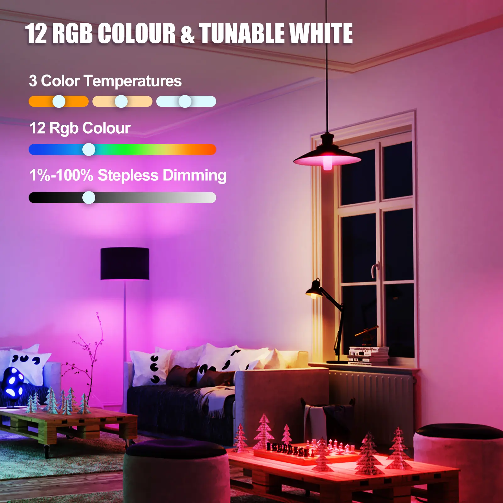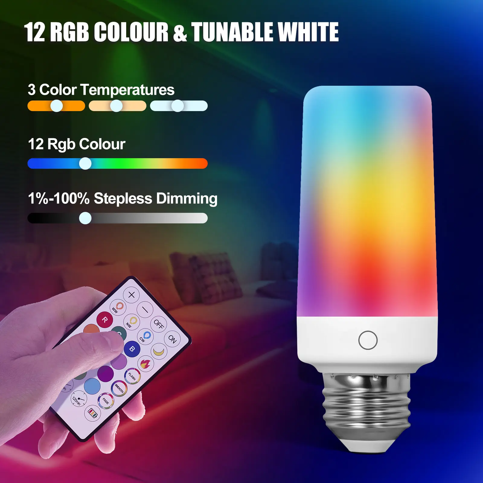 ·12 vivid RGB colors + 3 adjustable color temps (3000K Warm/4500K Natural/6500K Cool).