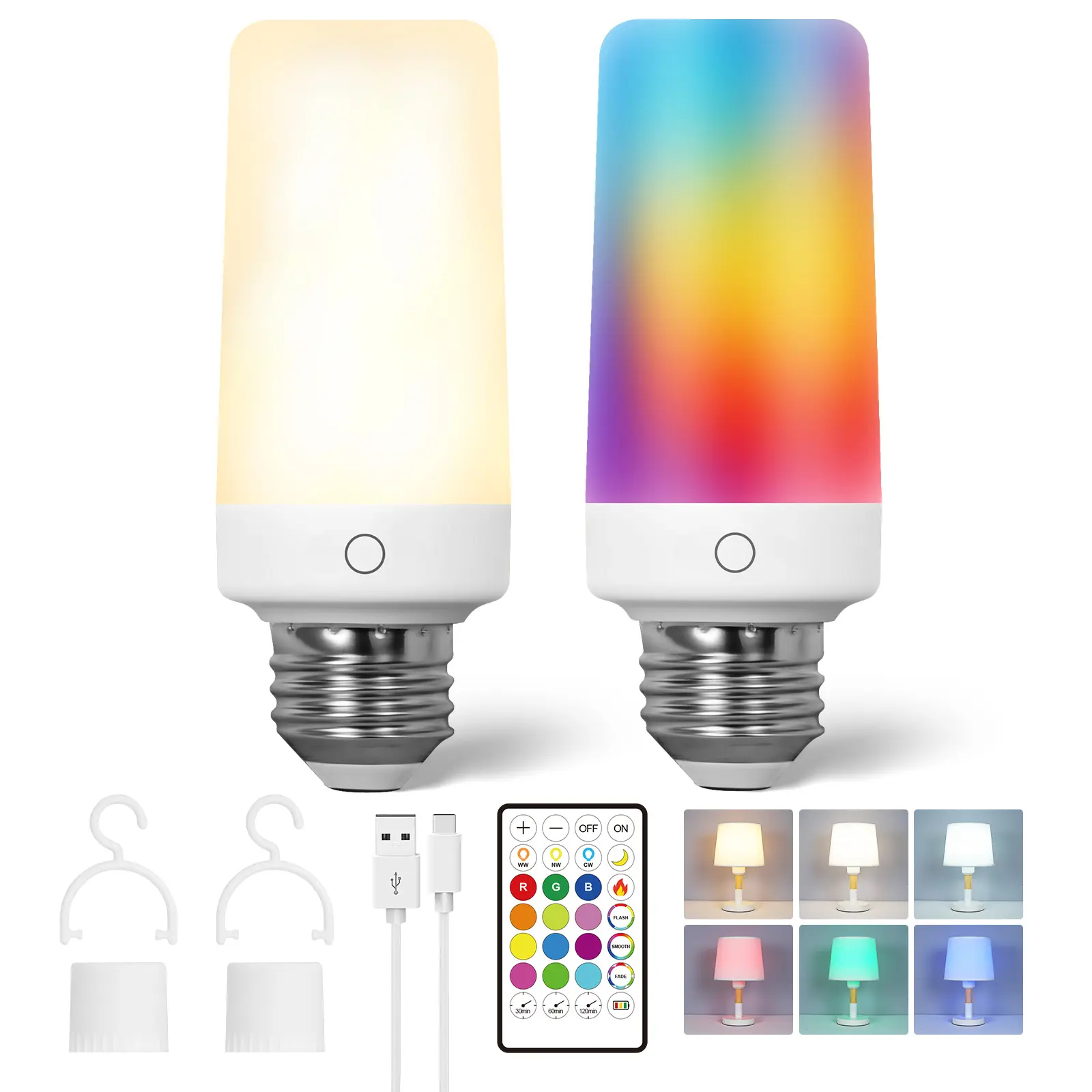 ·Built-in 1800mAh battery charges via Type-C USB or E26 socket (3-4 hrs).