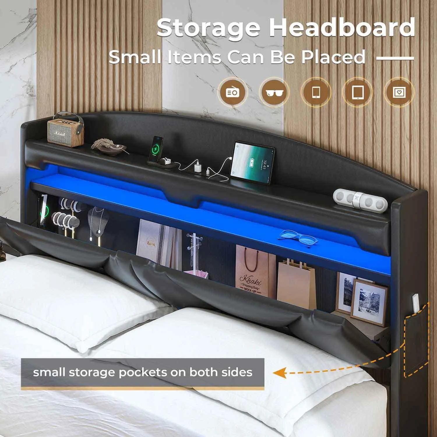 Comes with labeled parts. The lights are bright. And you can hide those adult things you wanna hide from your kids in the head board.