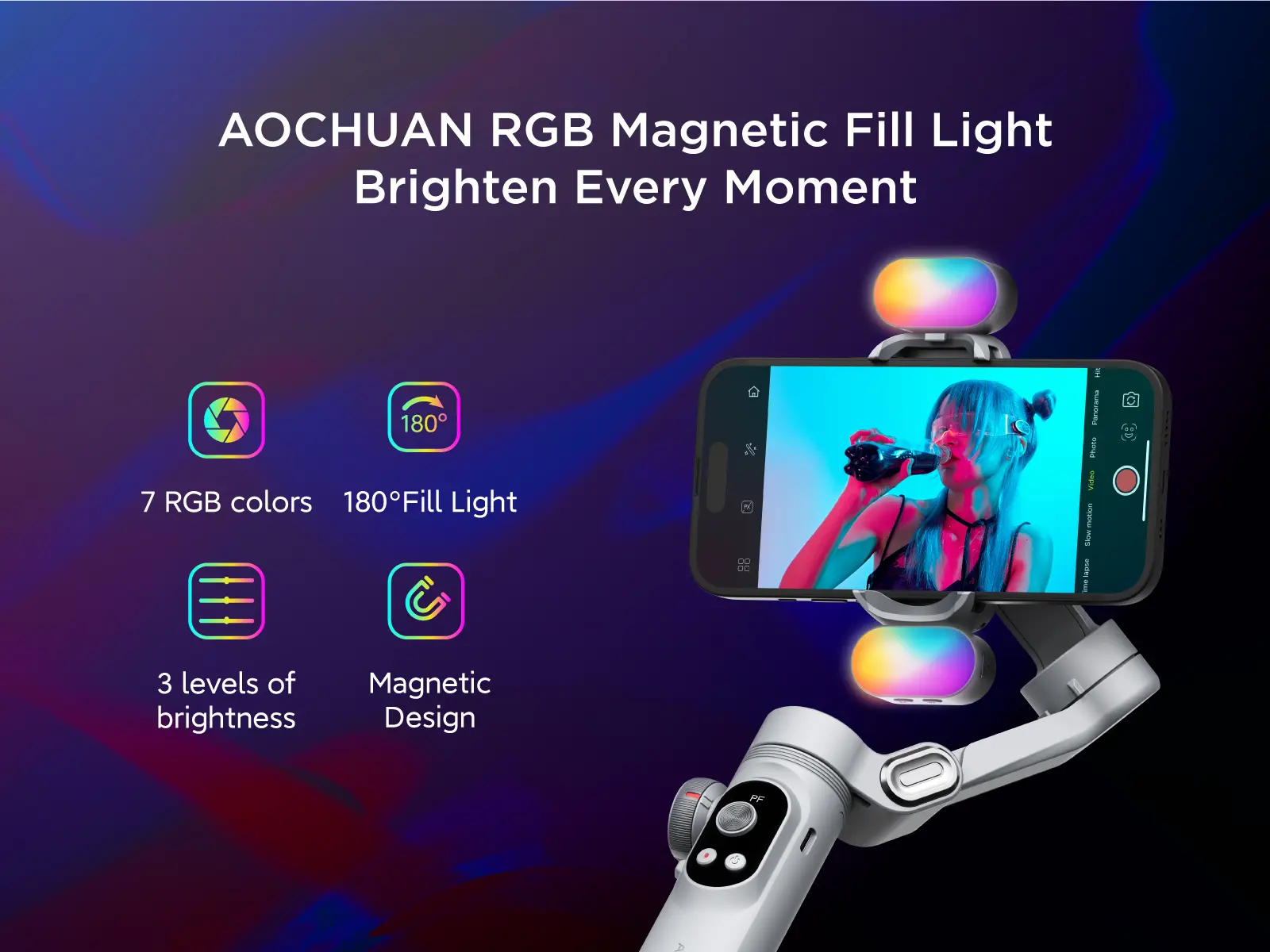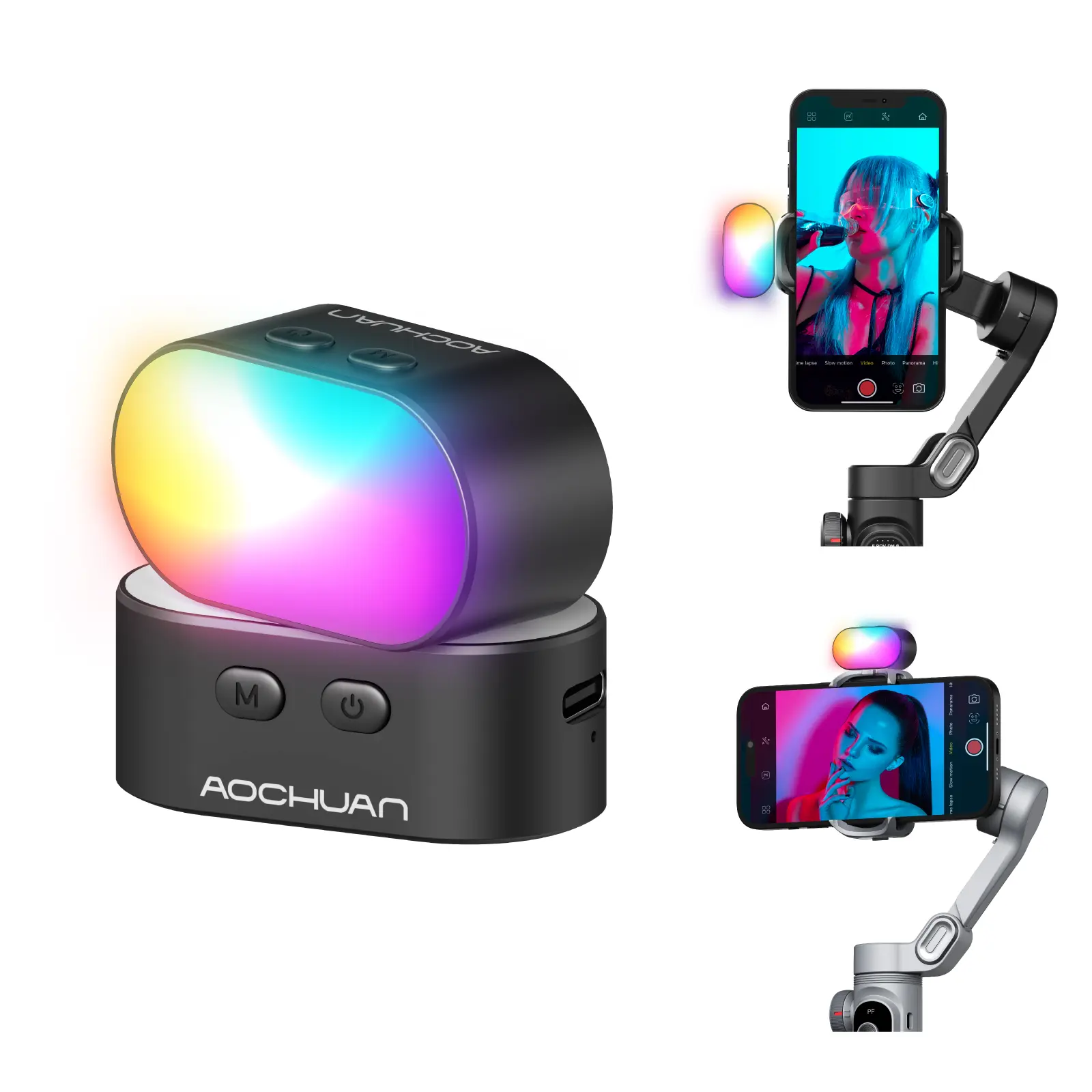 5. AOCHUAN RGB Magnetic Fill Light for Gimbal, LED Video Light w/3 Brightness and 7 Color Adjustment for Photography, Portable Mini Fill Light w/Long Battery Life for Hohem Zhiyun Feiyu Gimbal Stabilizer
