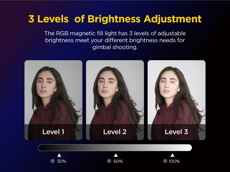AOCHUAN RGB Magnetic Fill Light for Gimbal, LED Video Light w/3 Brightness and 7 Color Adjustment for Photography, Portable Mini Fill Light w/Long Battery Life for Hohem Zhiyun Feiyu Gimbal Stabilizer