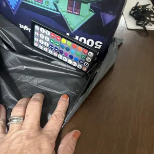 Product took longer than expected to arrive. Product arrived with box opened already assembled broken remote control and missing one half of the lights. Don’t know how this happened. Won’t ever buy from them again.