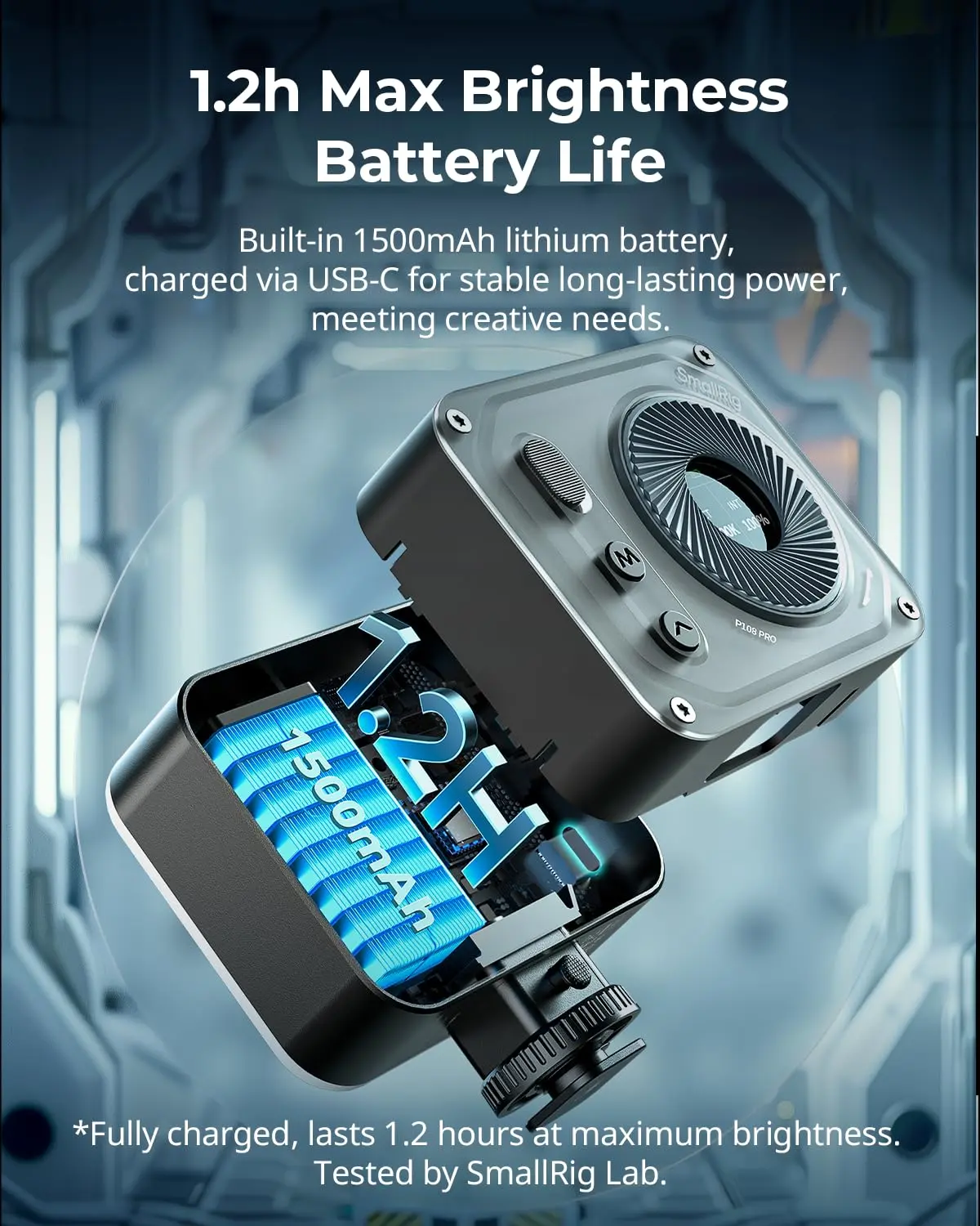 ·Long-lasting Power: Built-in 1500mAh lithium polymer battery supports USB-C charging, providing up to 1.2 hours at full power and 3 hours for regular shooting.