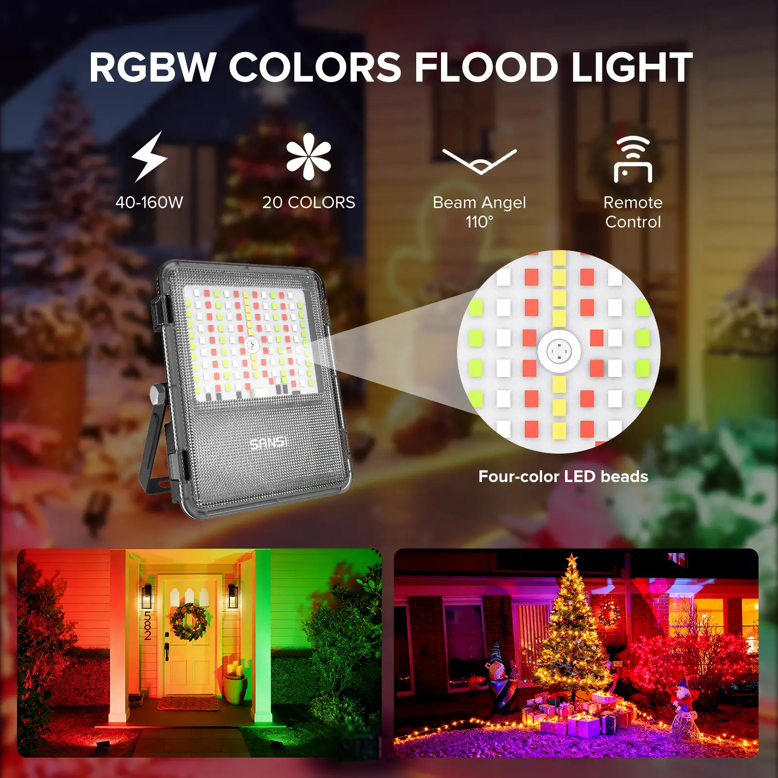 SANSI RGBW LED Outdoor Flood Lights 80W/120W/160W, Energy Efficient, Ideal for Pool Parties, Stage, & Landscape, IP66 Waterproof, 2-Pack, Perfect for Halloween , Halo Landscape Light, Outdoorfun Decorative