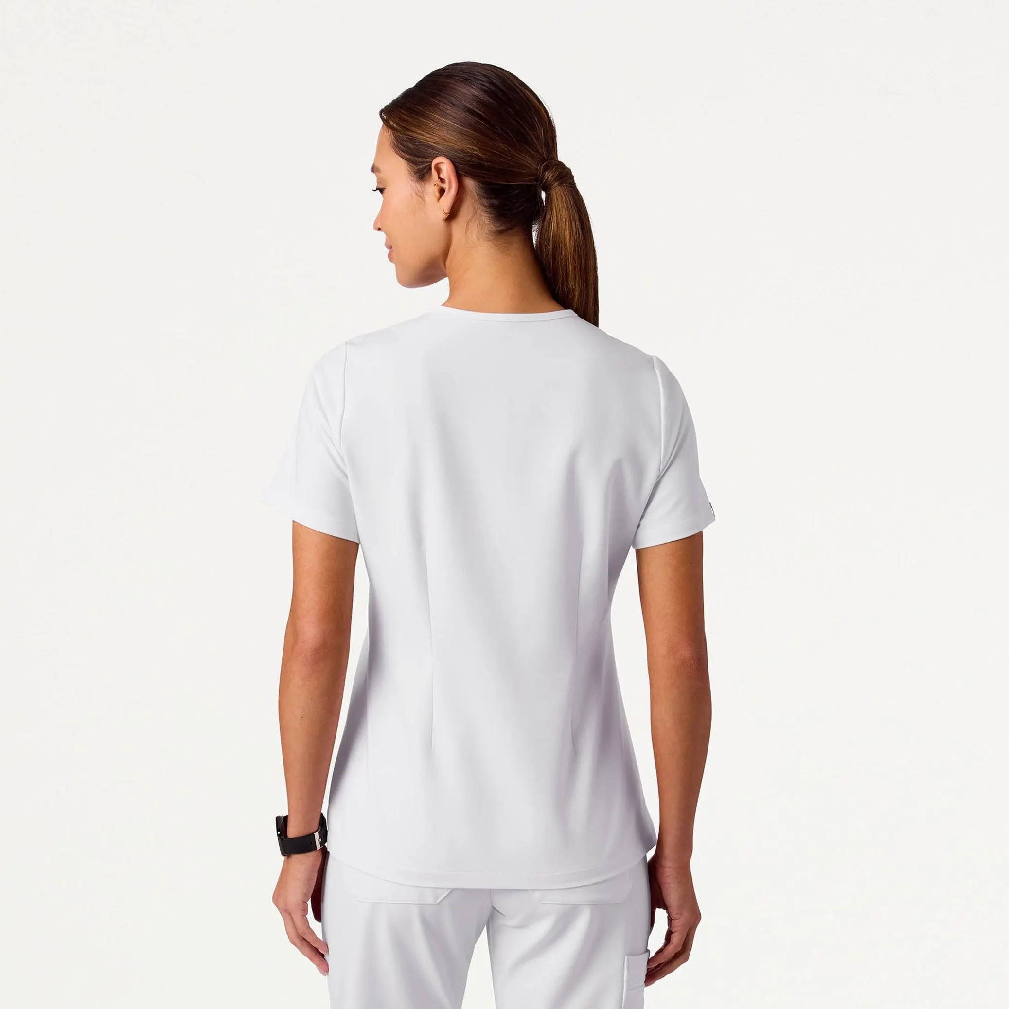 5. Rhena Slim Essential 1-Pocket Scrub Top - White