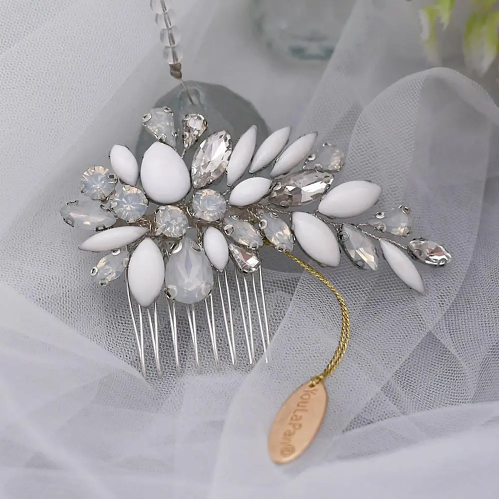 This beautiful bridal comb is the perfect finishing touch to your wedding look. It's hand wired with opals and rhinestones for a dreamy, ethereal effect. Whether you're wearing your hair up or down, this Rhiannon Bejeweled Comb will add elegance and glamour to your look.
