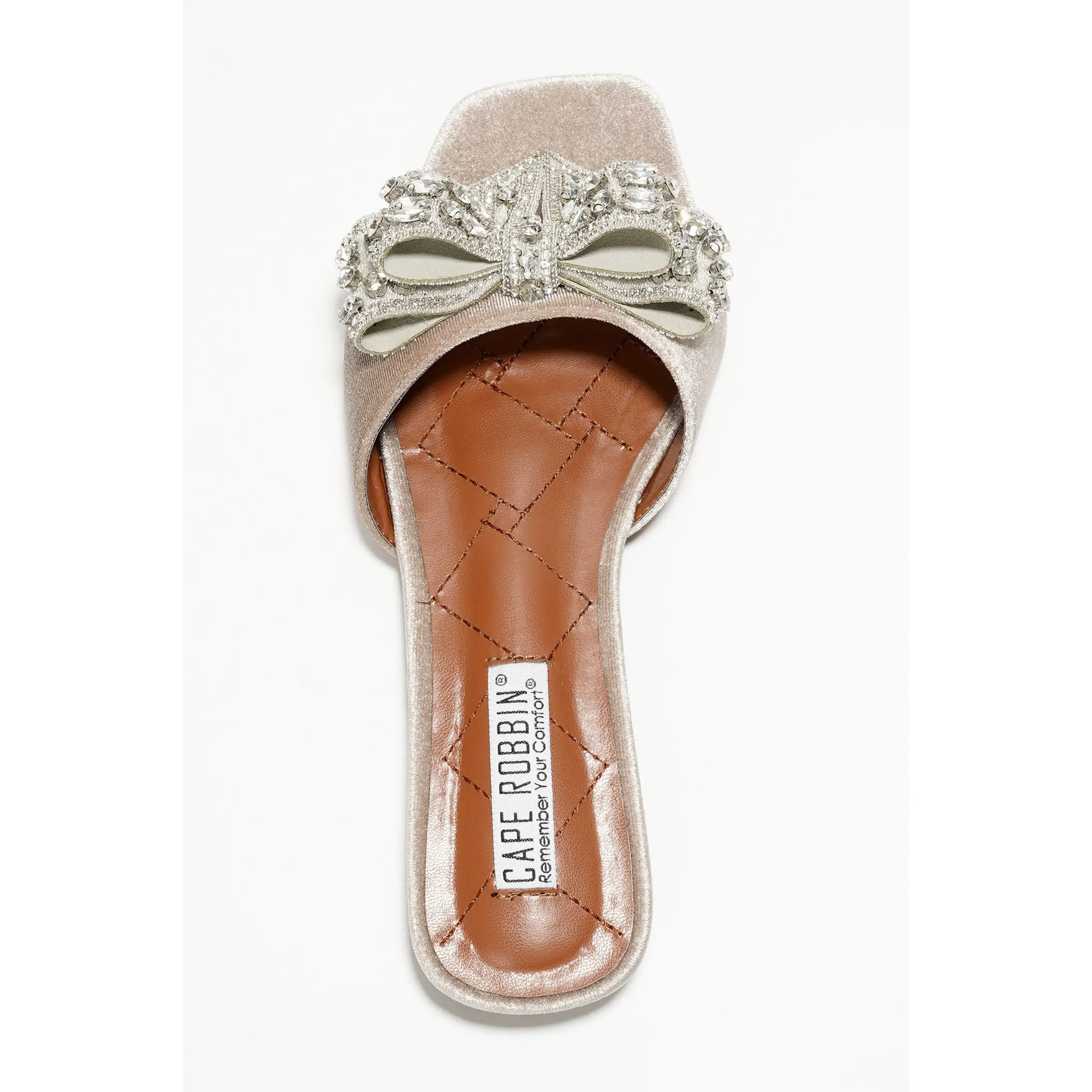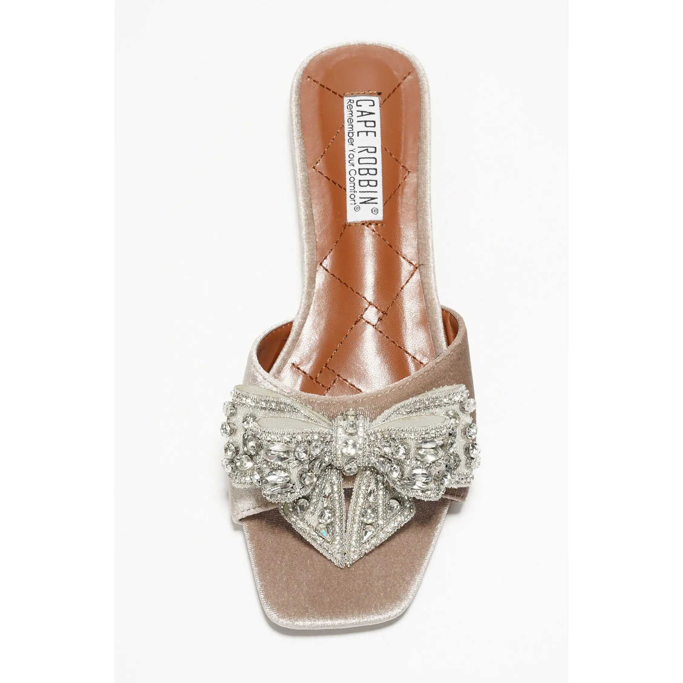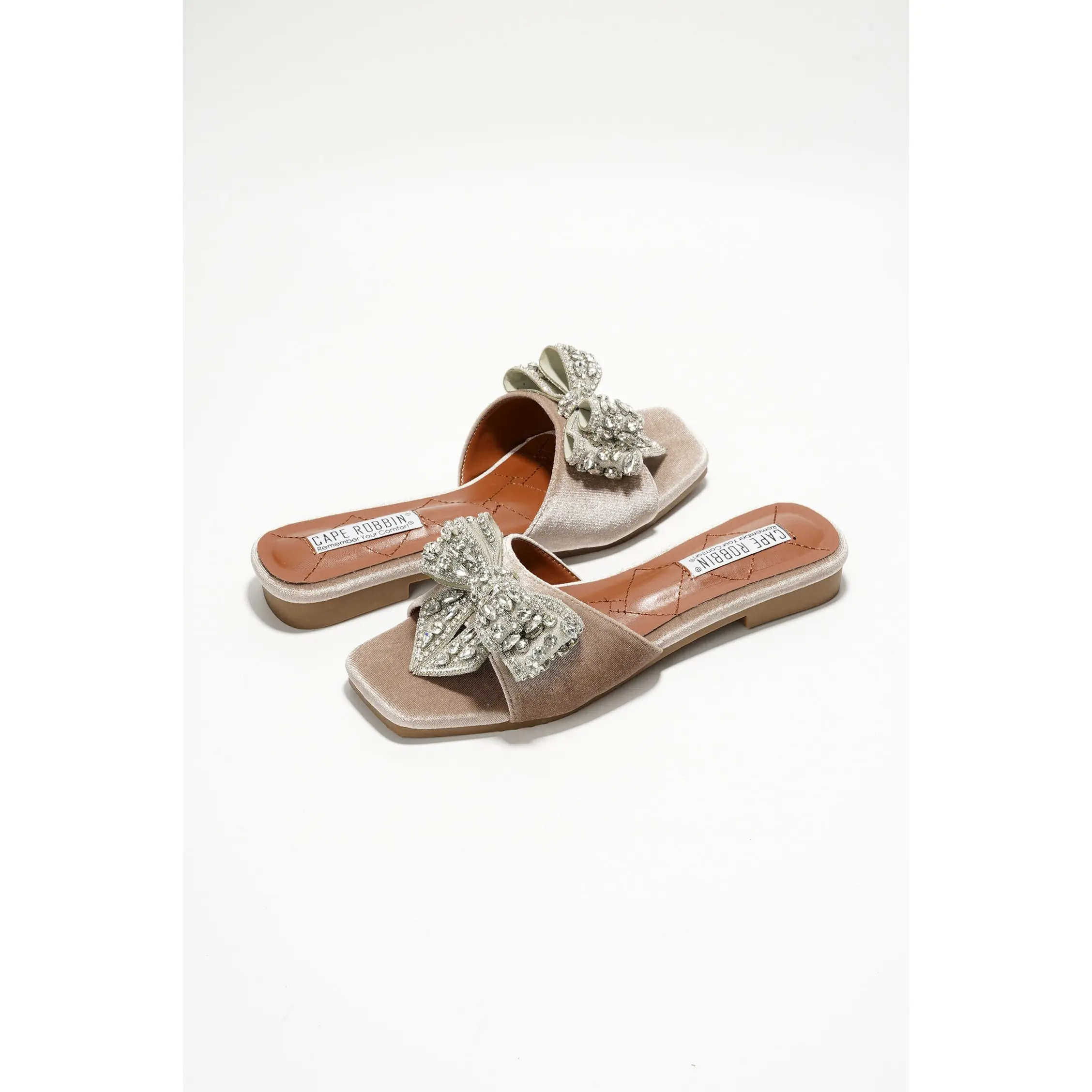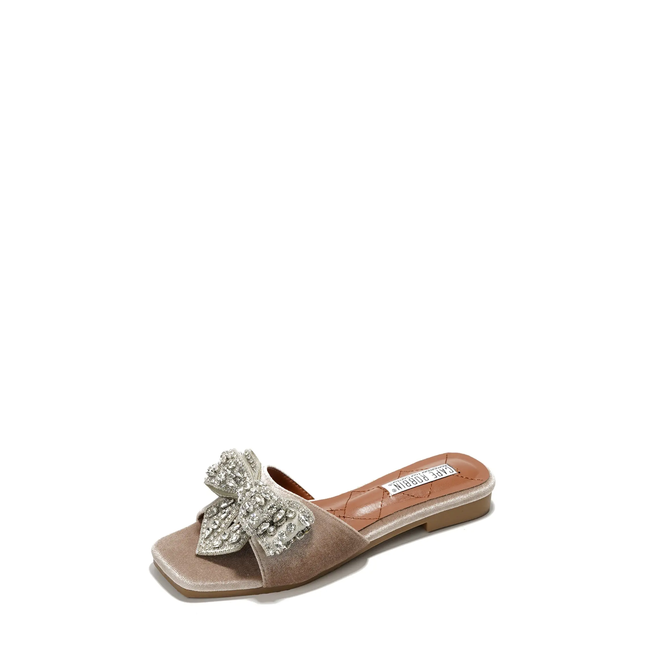 5. Ribbona Rhinestone Bow Slide Sandals - Beige