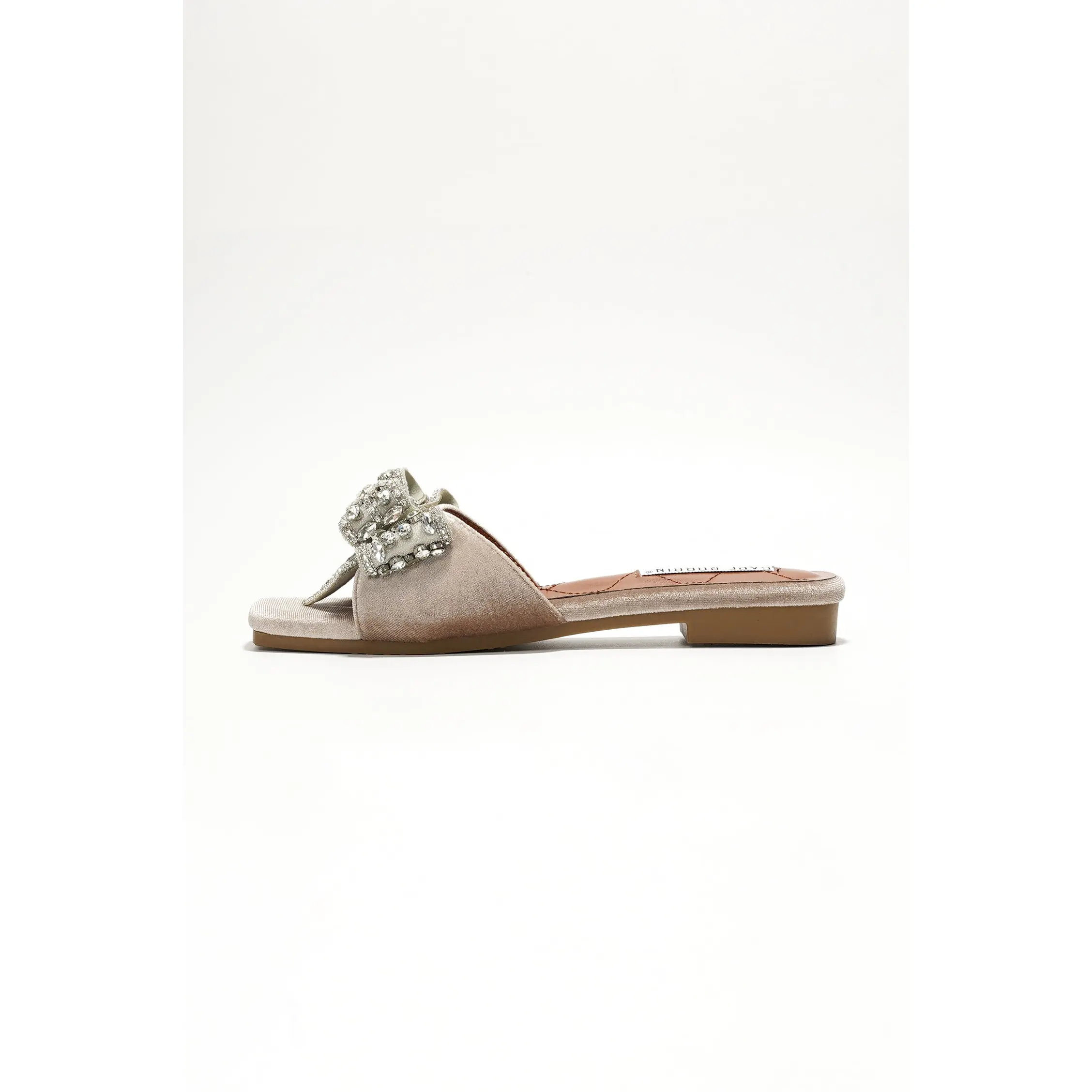 Ribbona Rhinestone Bow Slide Sandals - Beige