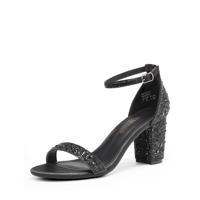 Dream Pairs Women's Rhinestone Chunky Heel Sandals