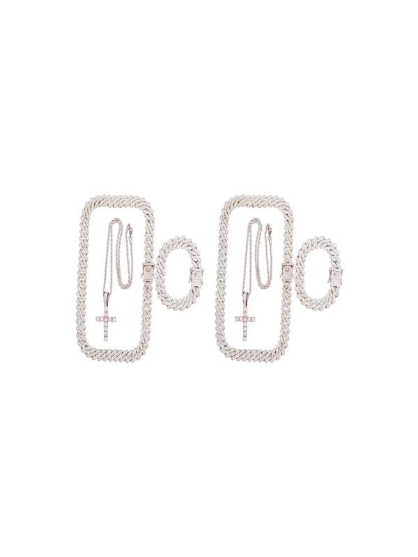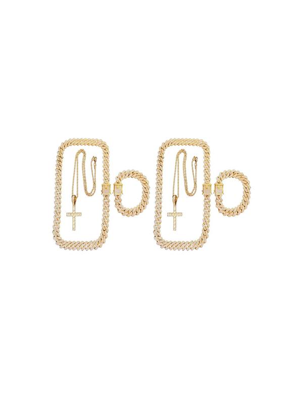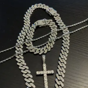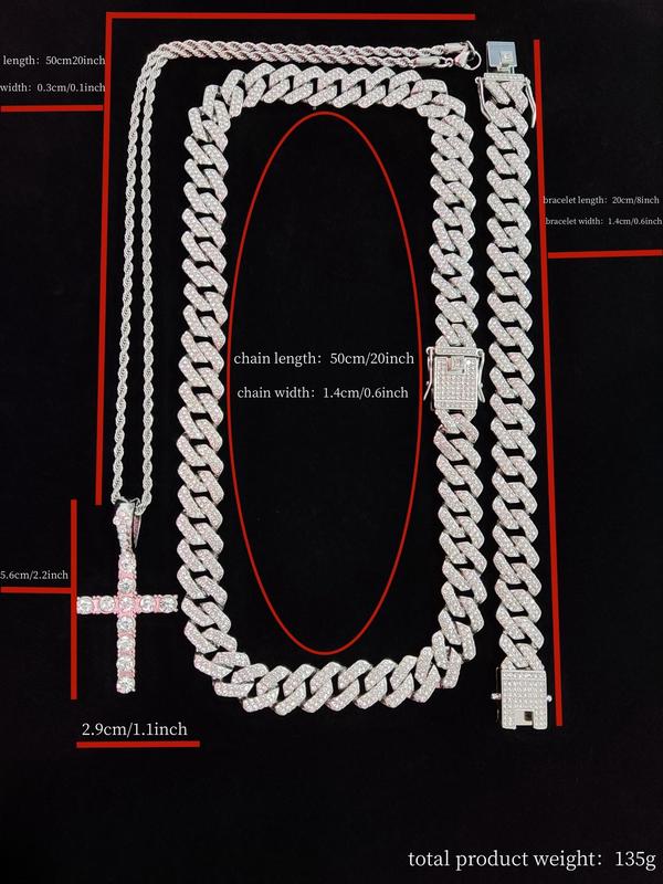 Rhinestone Cross Pendant Chunky Chain Necklace & Bracelet for Women & Men (3counts), Fashion Jewelry for Party, Daily Clothing Decor, Birthday Gift, Charm Necklace