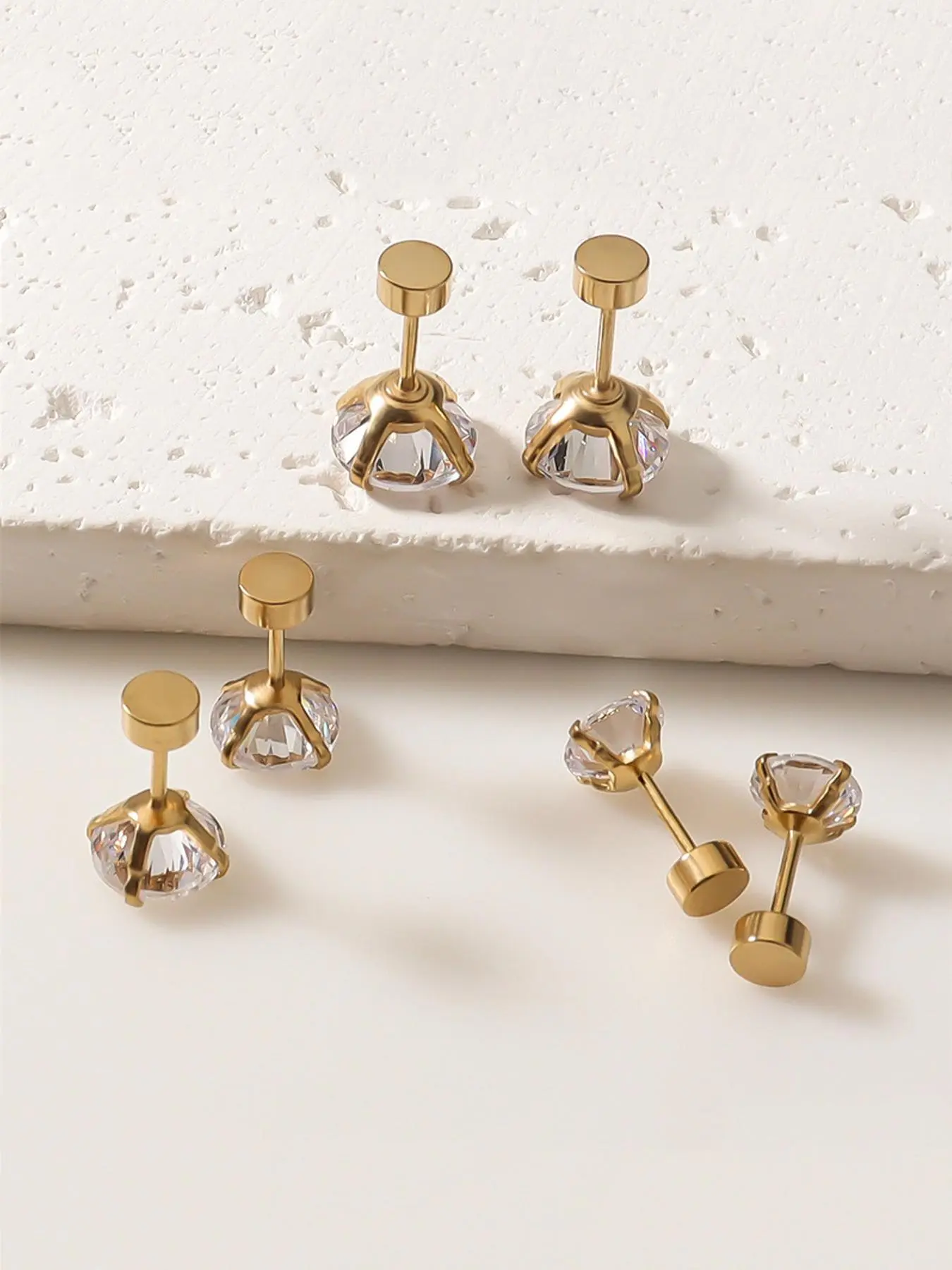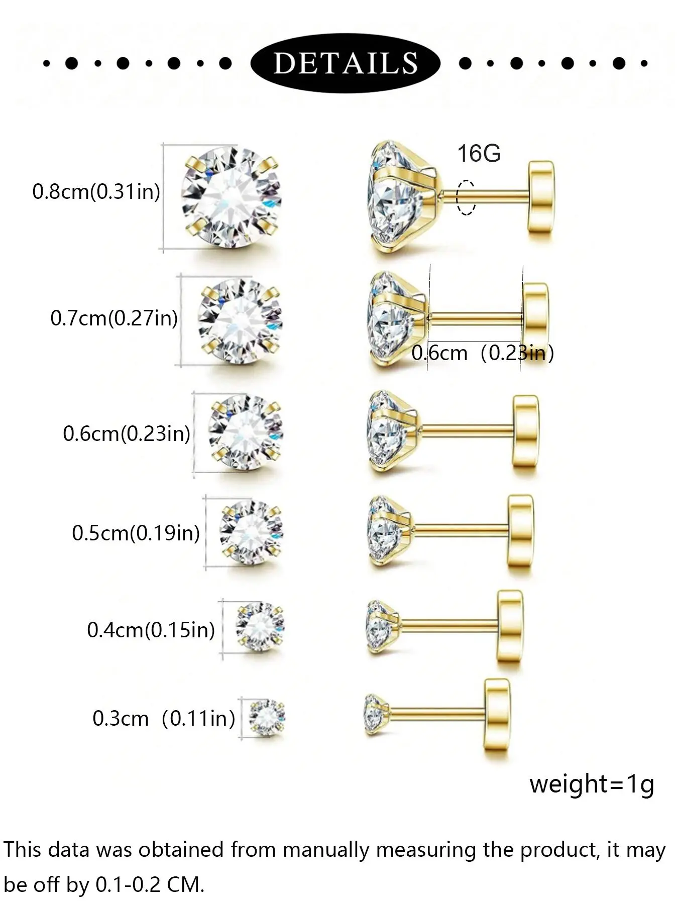 Multiple Sizes Cubic Zirconia Decor Ear Studs, Stainless Steel Material Ear Cartilage Piercing Jewelry for Women, Fashion Body Piercing Jewelry for Party, Daily Cubic Zirconia Decor, Funky Jewelry Six Pairs Variety, Rhinestone Embellishments
