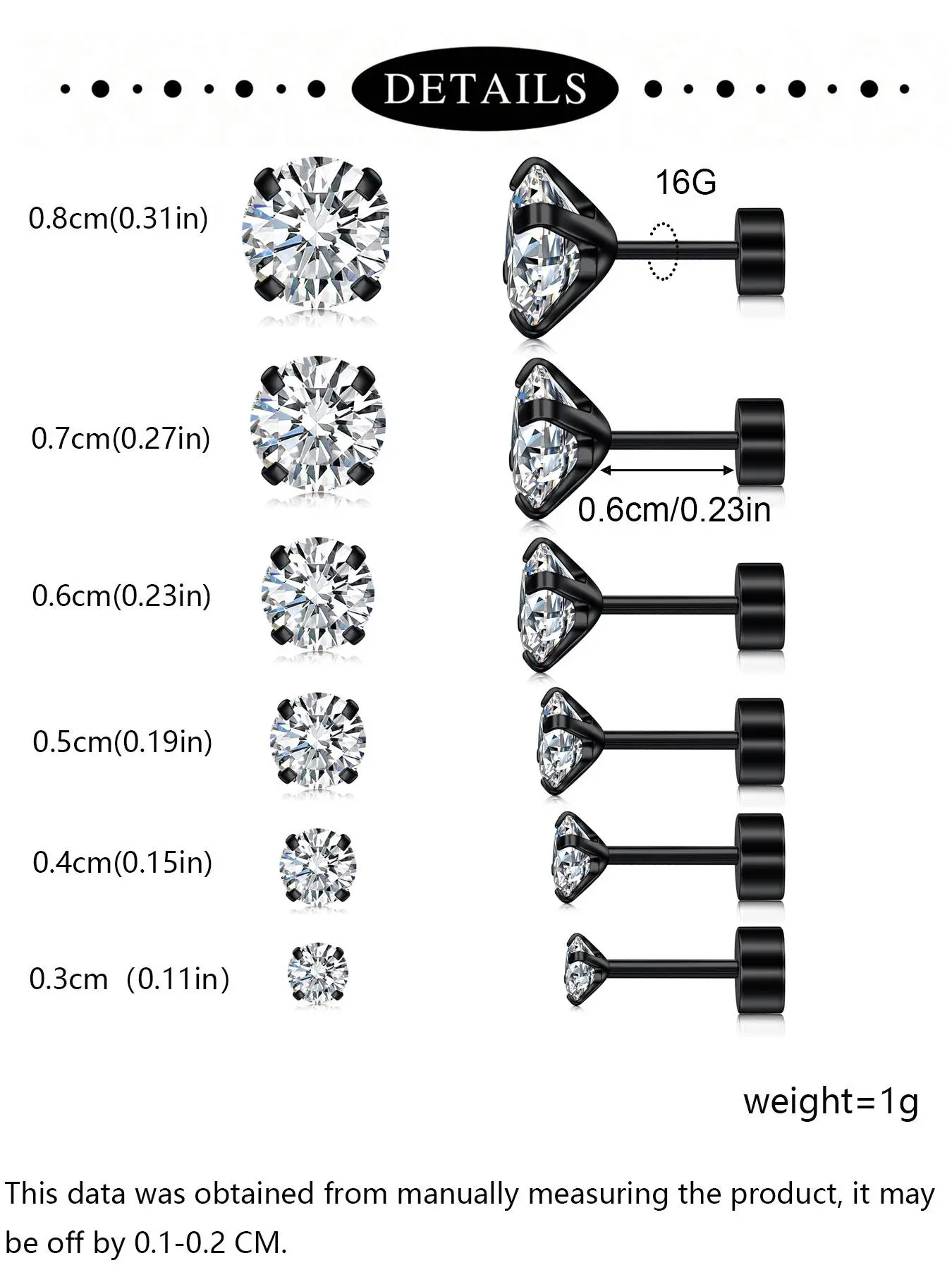 【Multiple Sizes】: The set includes earrings ranging from 3mm to 8mm, catering to different preferences and piercing sizes.