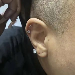 great for professions that dont allow piercings!! Barely visible depending on where the piercing is located. it catches the light glare in certain cartilage piercings but overall amazing. I like that the top clasps have different sizes aswell!! I’ve bought these 2x! Below is a pic for reference