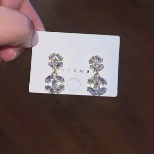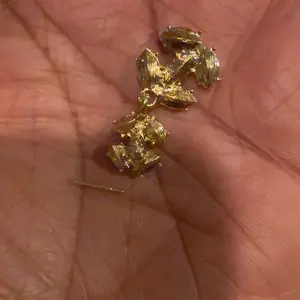 Beautiful earrings! They look just like the picture. A tiny weight but not too heavy. The stone appears yellow but is more of a clear color. Great quality & luxe looking.