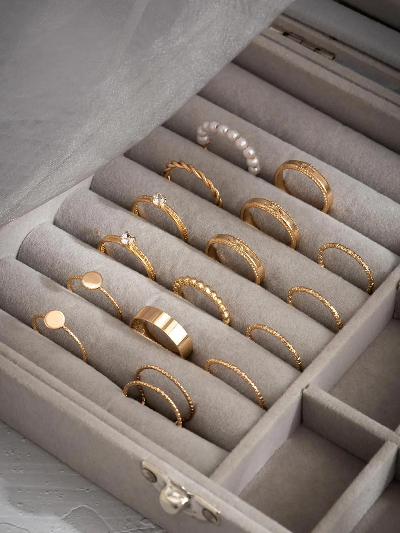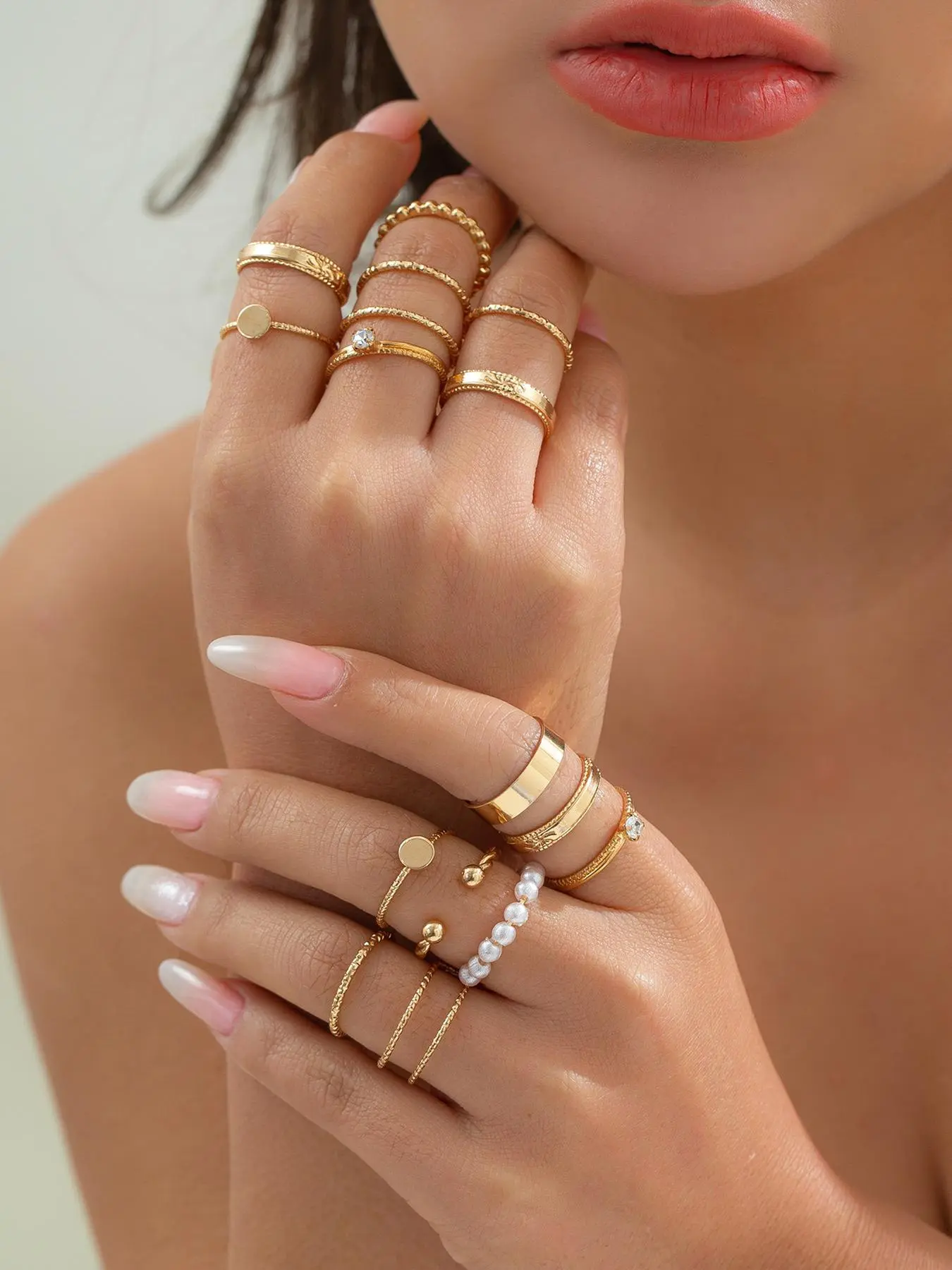 got all the rings in the photo but they aren’t size 8. definitely fit more like a 7. only a few of them fit my ring fingers which are size 7-7.5. cute rings tho