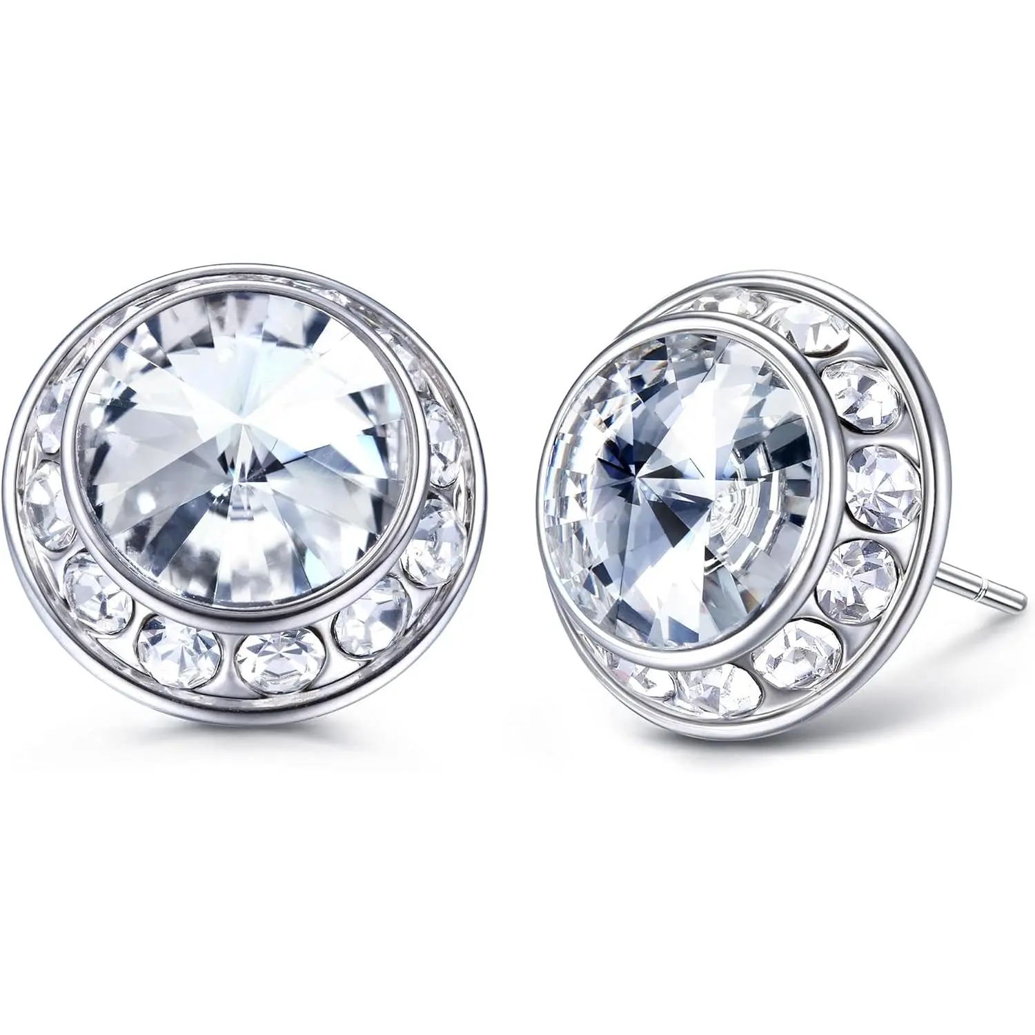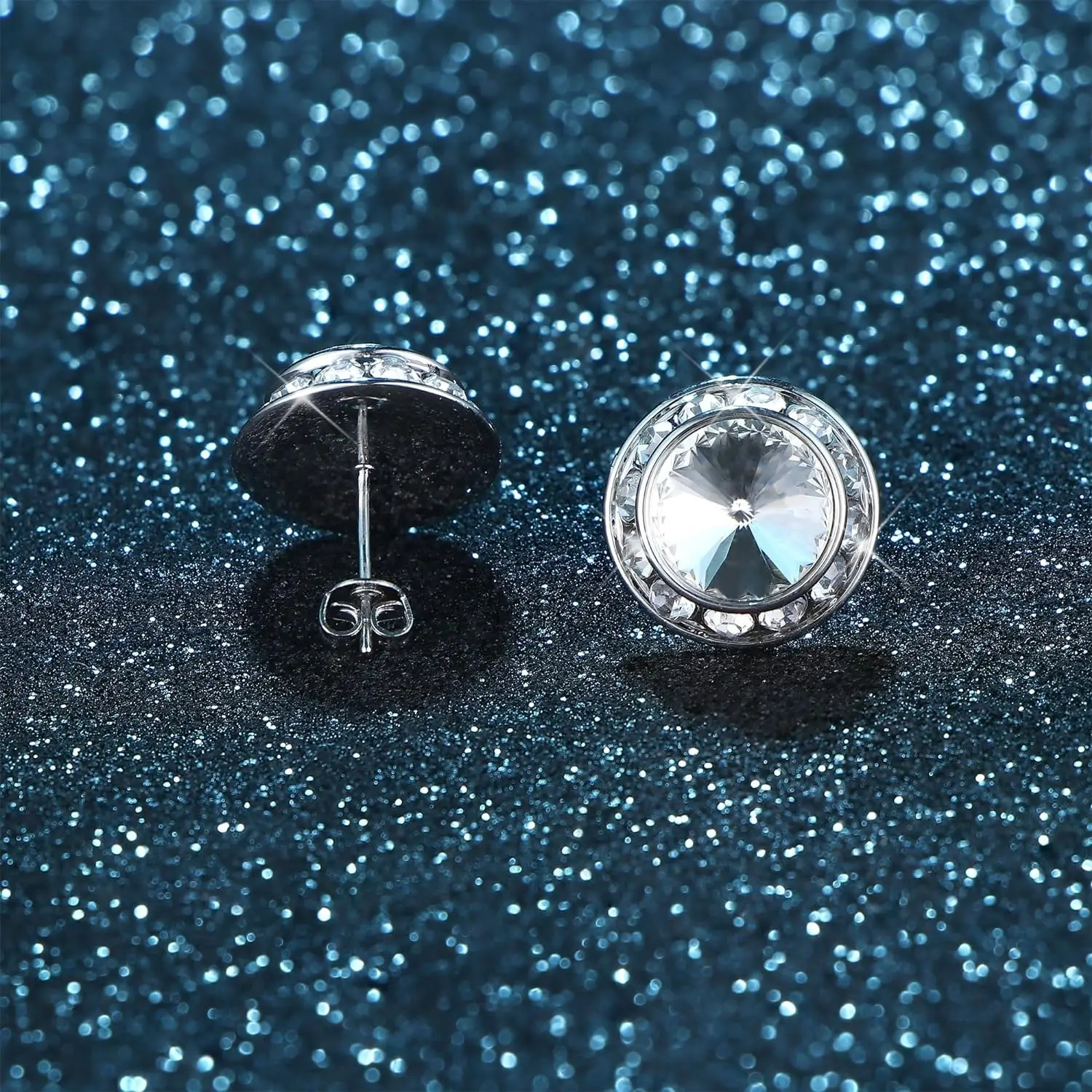 【Halo Stud Design】: Dance competition earrings featured with a sparkling large crystal in the center and surrounded by 12 shining cubic zirconias, solid inlay and welding process make stones firmly attached to the earrings and not easily fall off