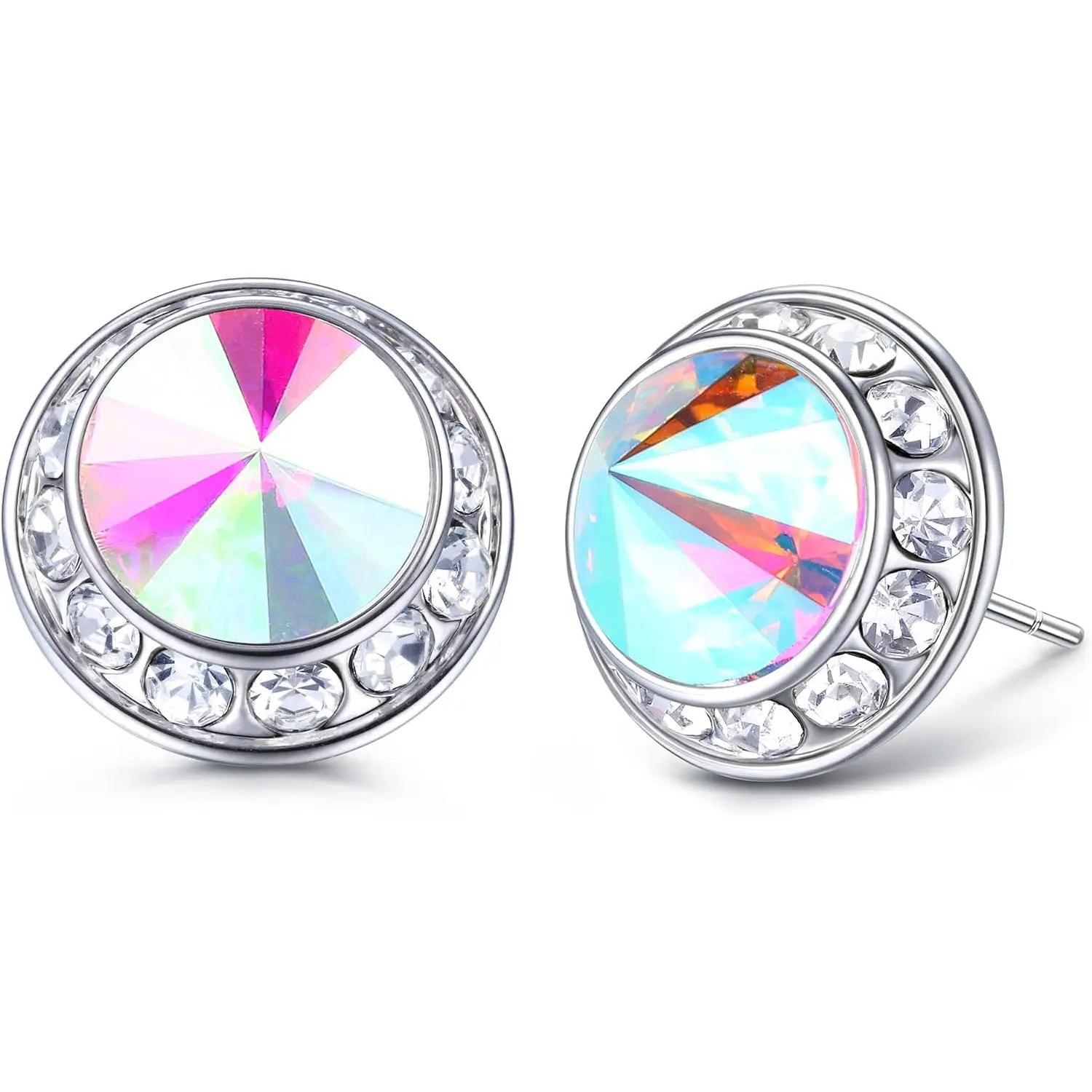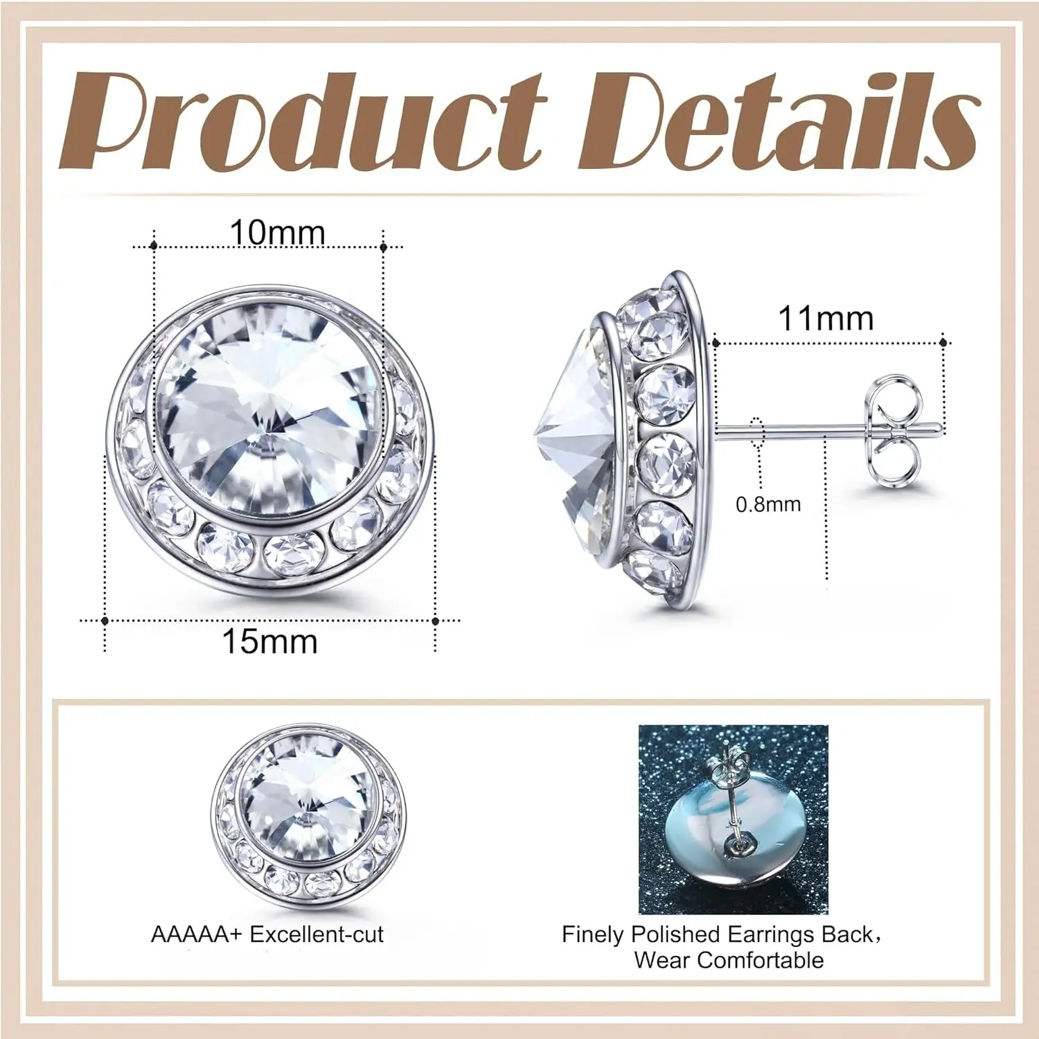 【Specifications】: The whole earrings size is 15mm, 10mm stone in the middle, flat design on the back, lightweight and comfortable to wear. 11mm ear post length, fit for most ear hole. Available in 10 colors for you, bring you many compliments