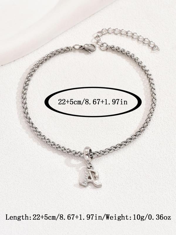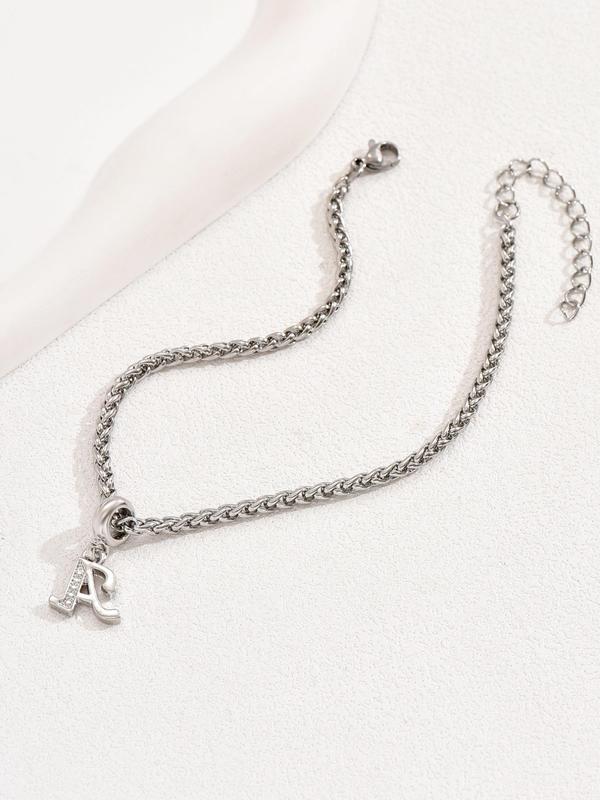 Super cute anklet. It has started to tarnish after weeks of every day wear, showers, sweat and all. Stainless steel? Probably not. I believe it's sterling silver. Otherwise, it's beautiful, still shiny (it's just turning a copper color around the charm). It is a little bit bulkier than I imagined.