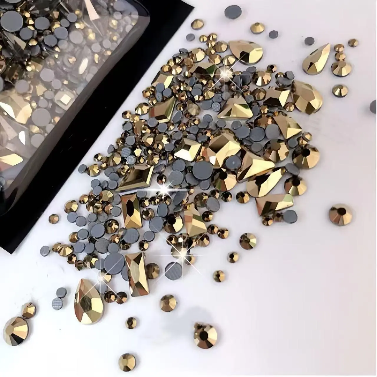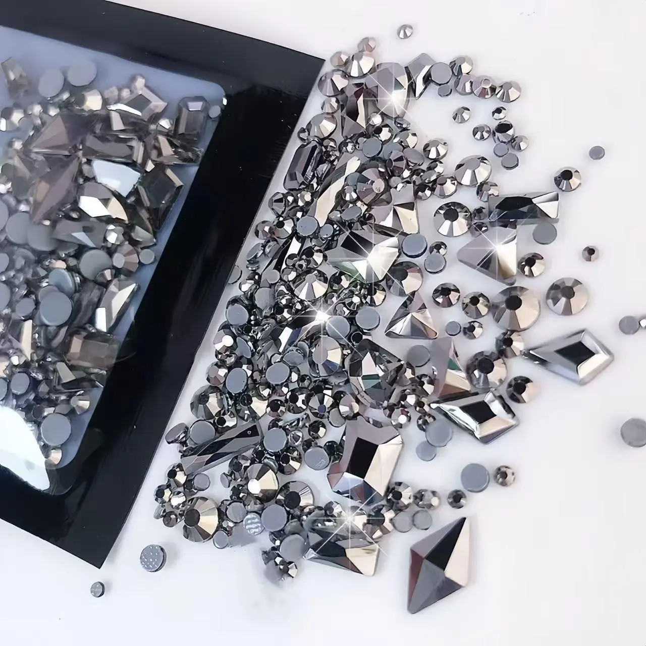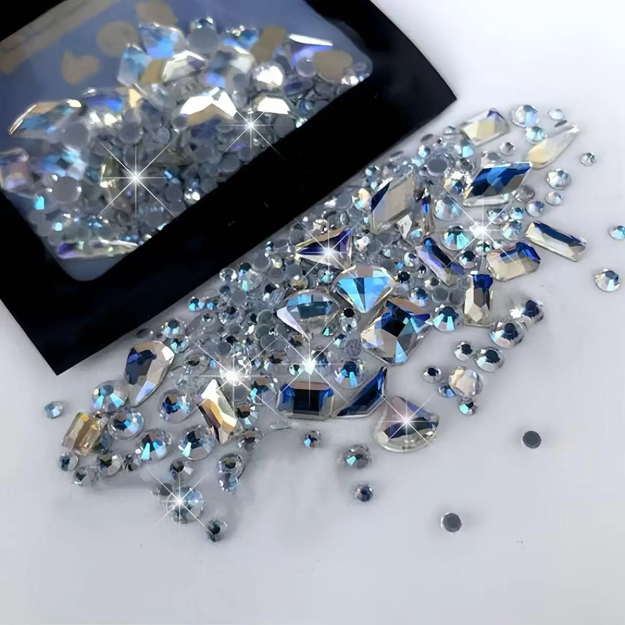 Rhinestone Nail Art Decoration, Glitter Rhinestones, 300pcs/bag Flatback Round Rhinestone & Flatback Odd Shaped Large Cubic Zirconia, Nail Art Accessories
