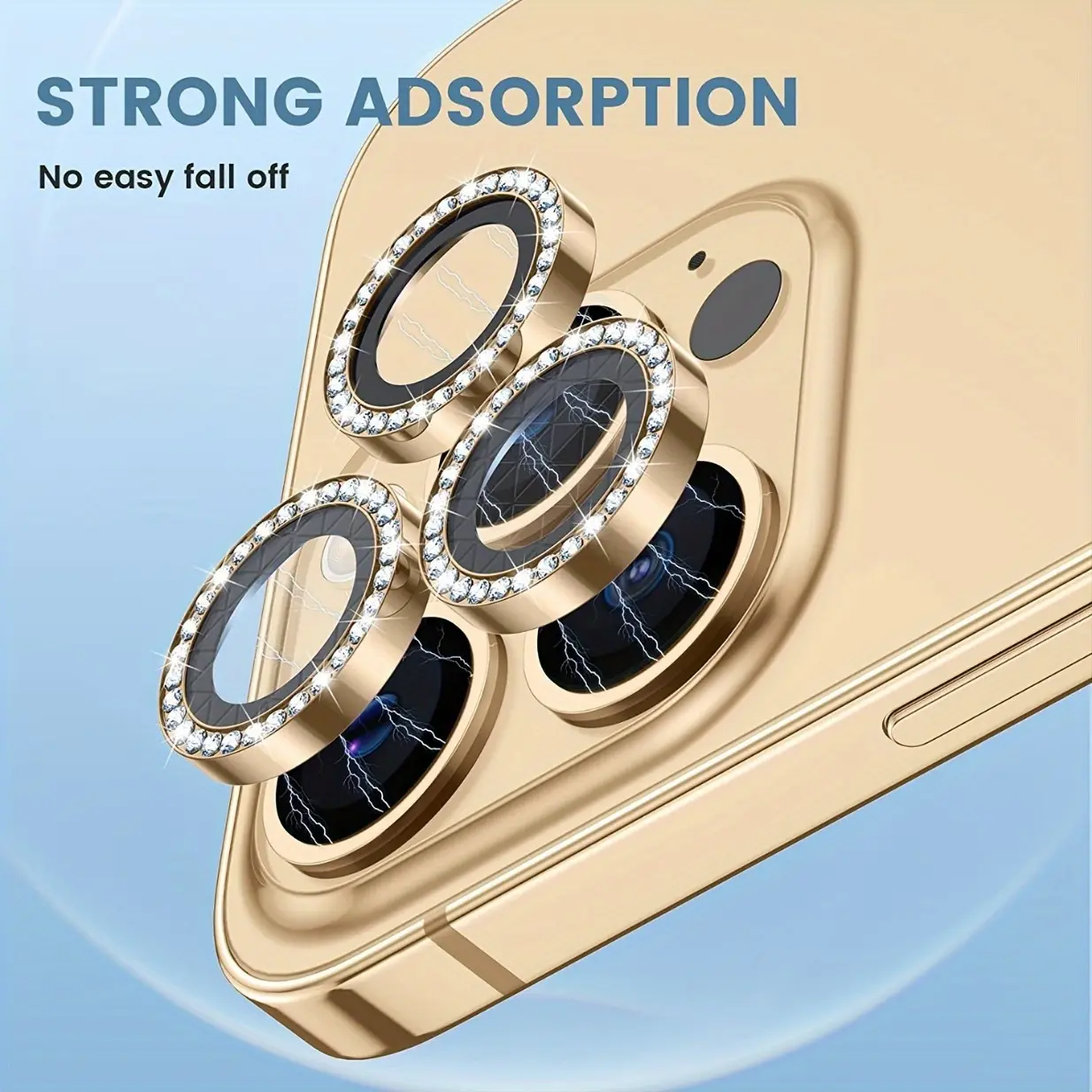 Ever wish your iPhone camera lens had a little extra sparkle and protection? This rhinestone ring camera lens protector is just the thing! Designed to fit a wide range of iPhone models from 11 through 16—including all Pro, Pro Max, Plus, and Mini versions—it adds a glamorous touch while shielding your lens from scratches and dust. Crafted from tough tempered glass, it keeps your camera safe without compromising photo clarity or touch sensitivity. Installation is a breeze, snapping perfectly onto your lens for a secure fit. Whether you’re snapping selfies or capturing scenic views, this protector keeps your lens looking fresh and fabulous. The box includes one rhinestone ring protector tailored to your iPhone model. Ready to glam up your phone and keep that lens pristine? Grab yours today and let your camera shine!