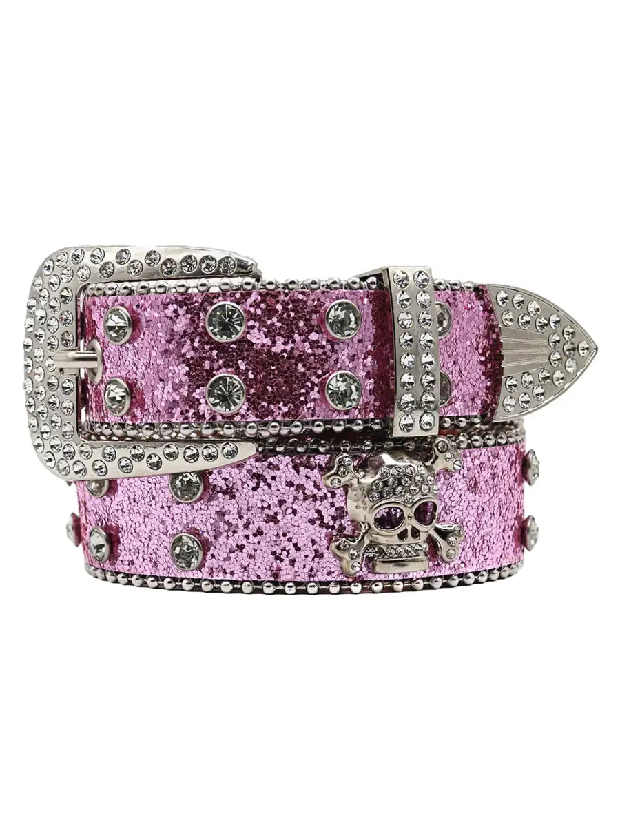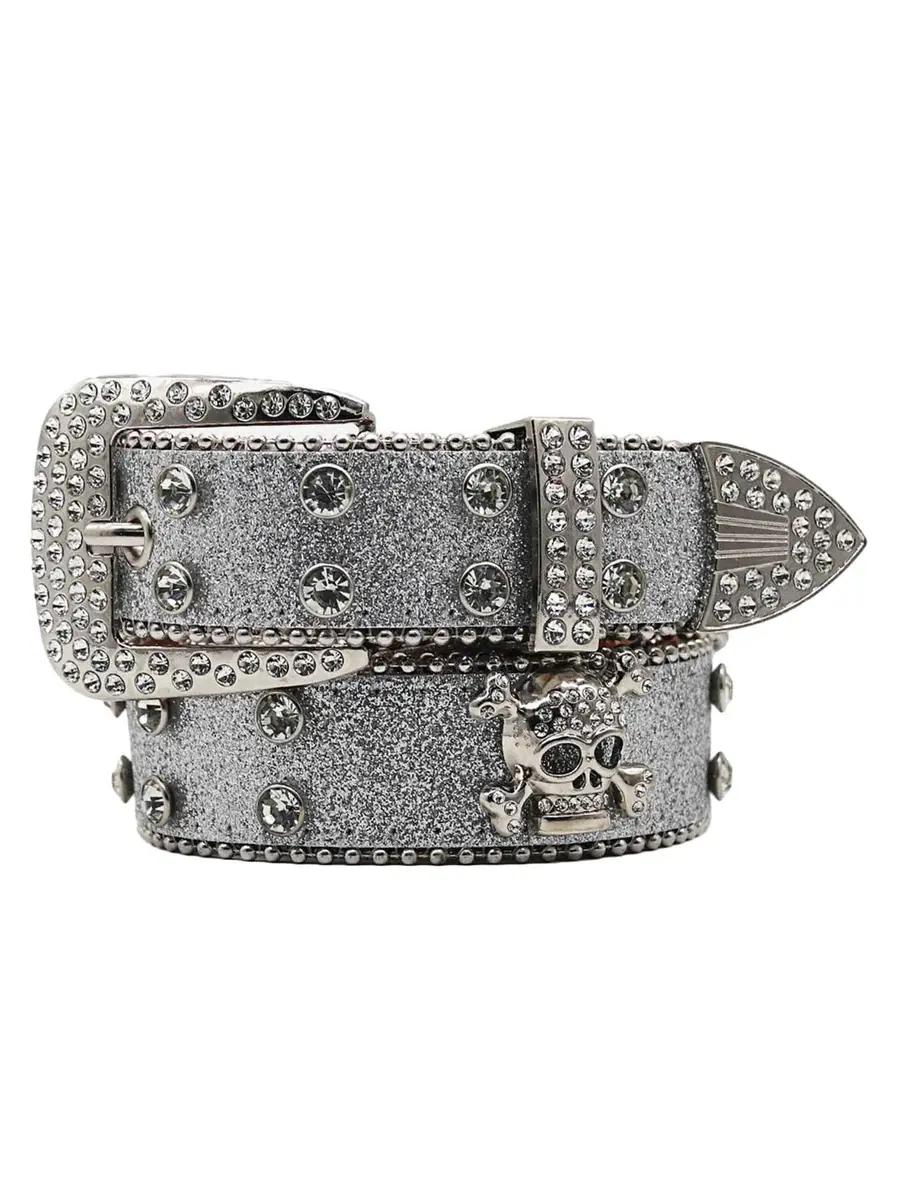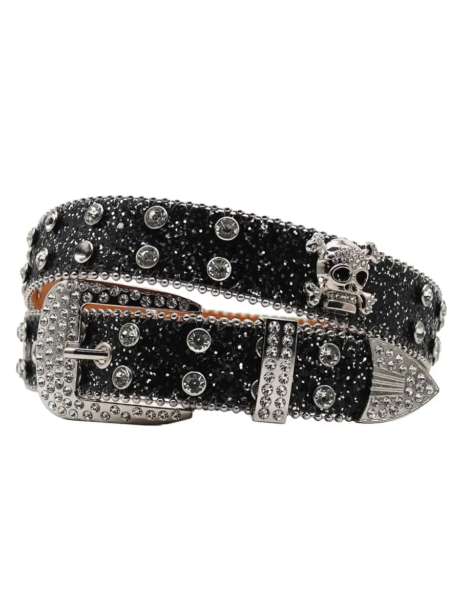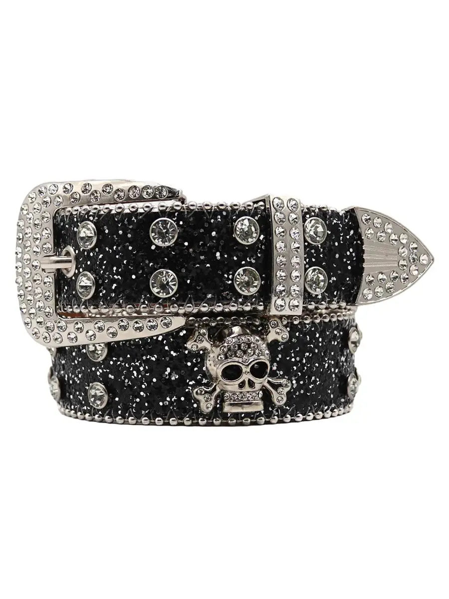 • Detail Features: Rhinestone Studs, Skull Buckle, Adjustable Length