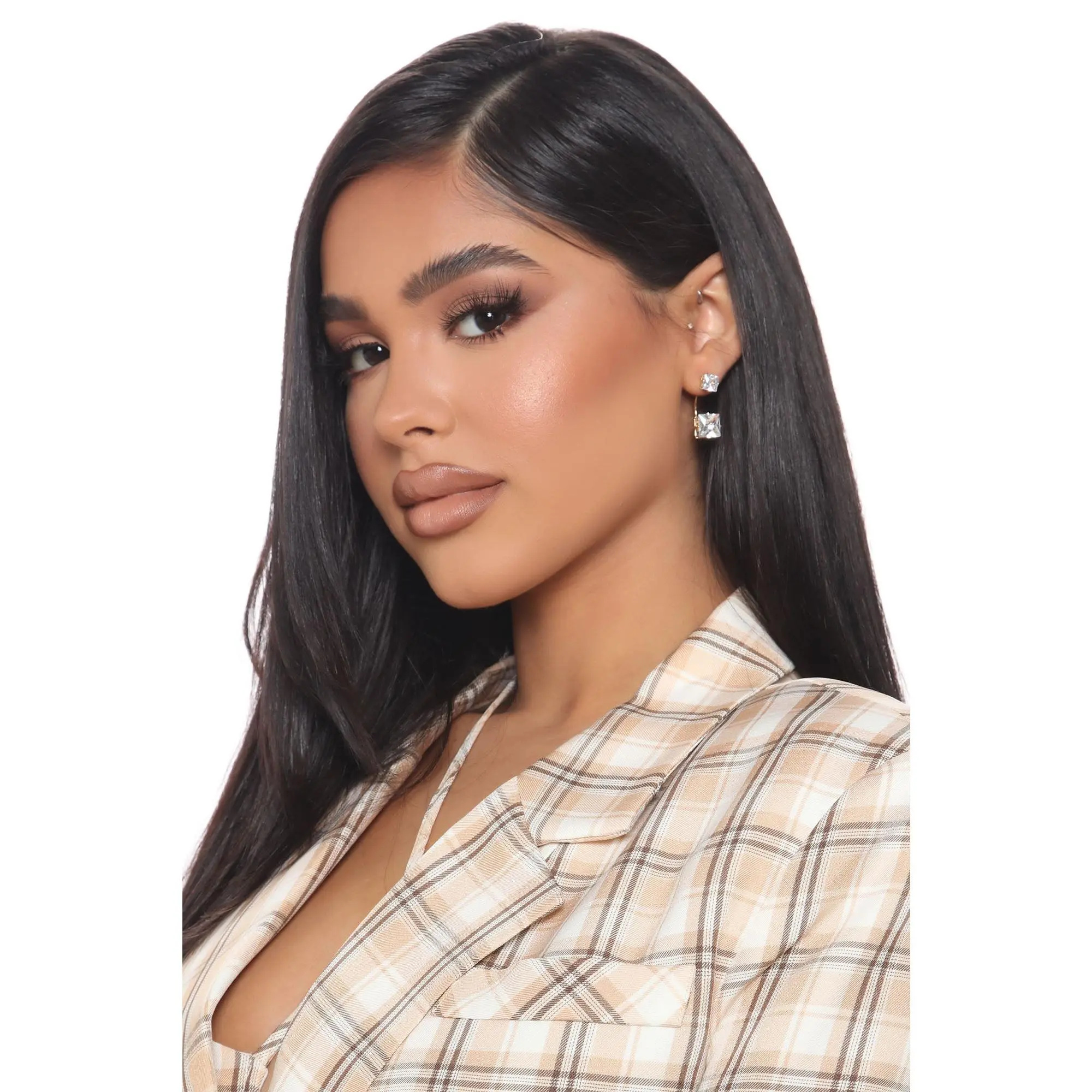 Nice earrings but I ordered 2 and only recieved one. The one recieved was damaged. The stone was out of the setting and the prongs to hold it in was bent. Im unable to place it back into the setting without breaking the thin metal piece that holds the stone in place. Was unable to reach Fashion Nova's customer service to address these issues. Hopefully I can get it resolved through Tik Tok customer service.