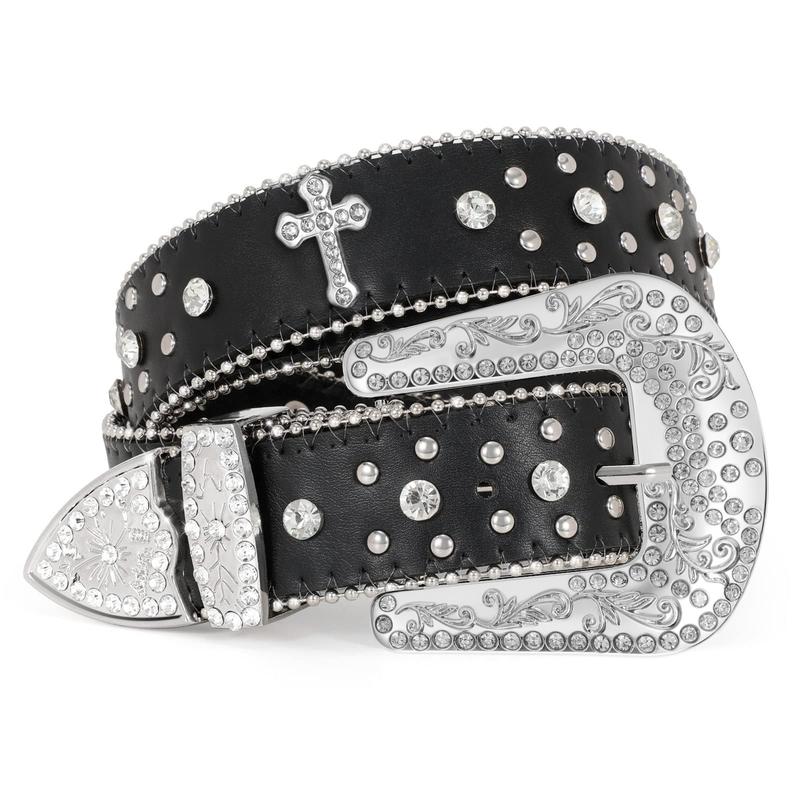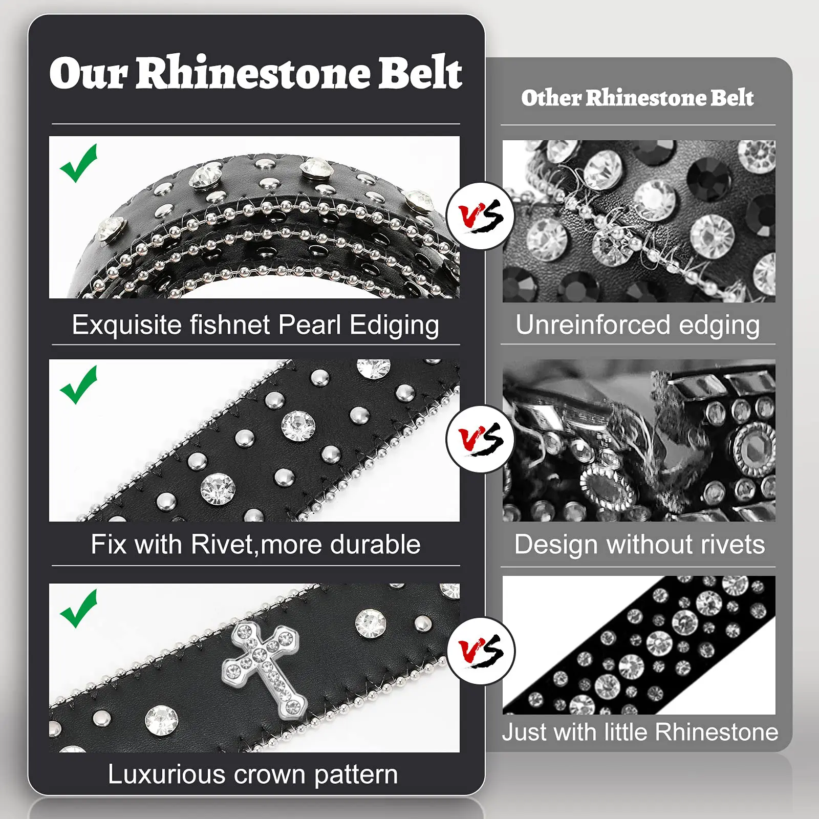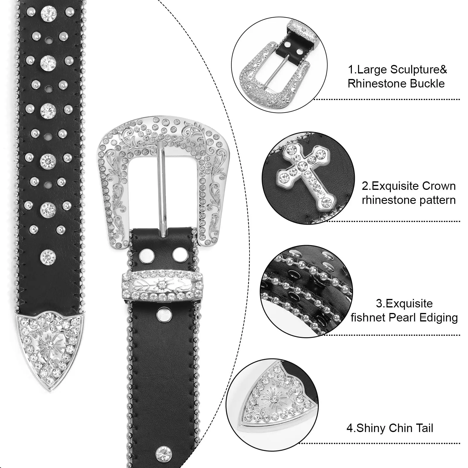 Wide Application: This rhinestone leather belt very stylish and look chic, bling rhinestones will leave a deep impression, make yourself look more shinny and luxury.