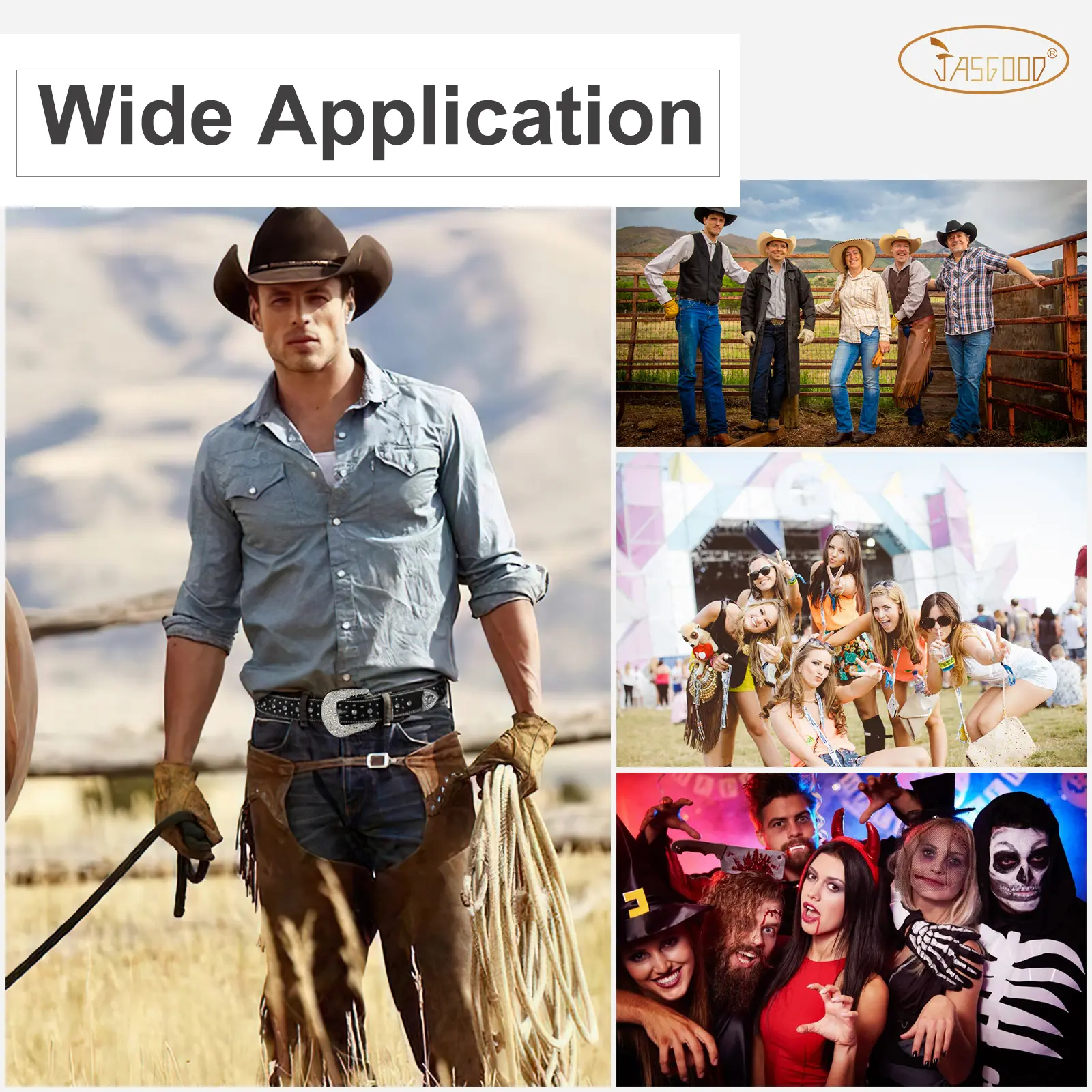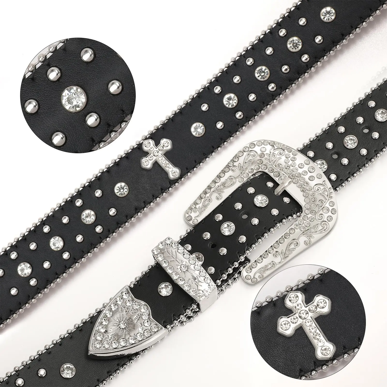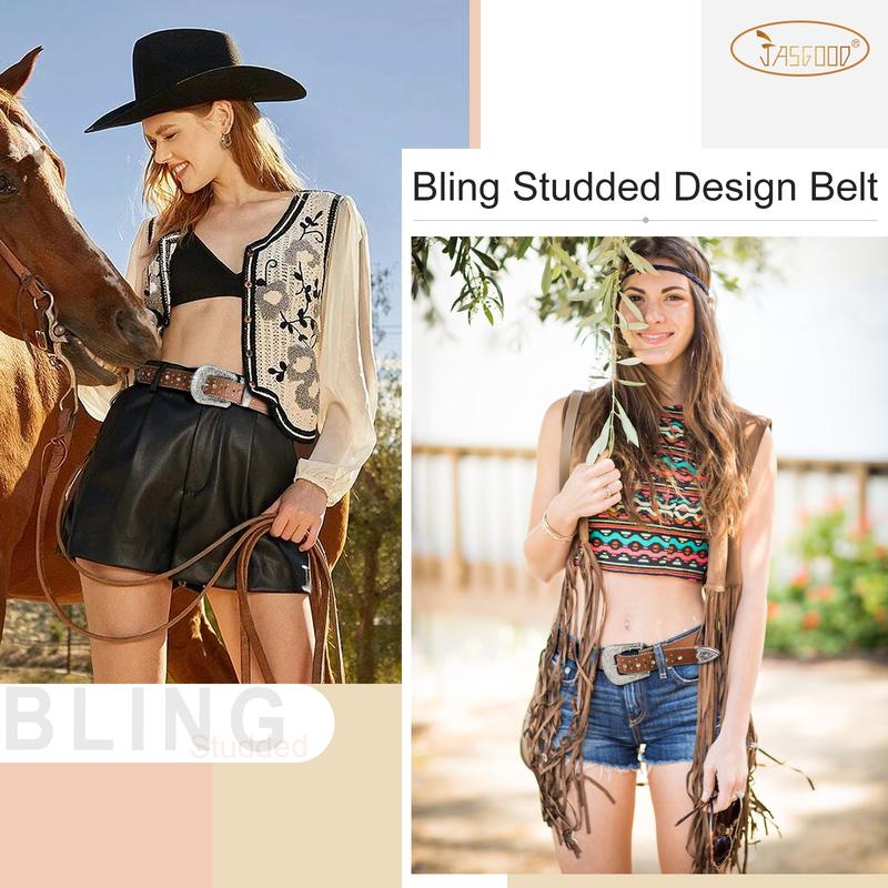 JASGOOD Rhinestone Studded Belt for Men Women, Western Leather Belt for Cowgirl Cowboy Vintage Bling Belt for Pants Dress