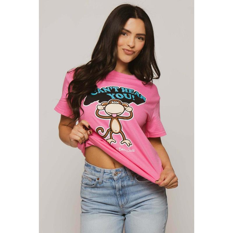 Can't Hear You  - Bobby Jack Boyfriend Rhinestone T-Shirt -Pink